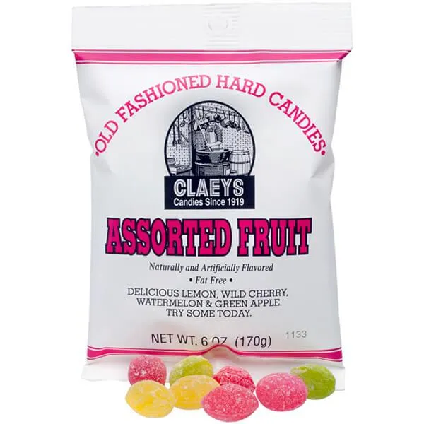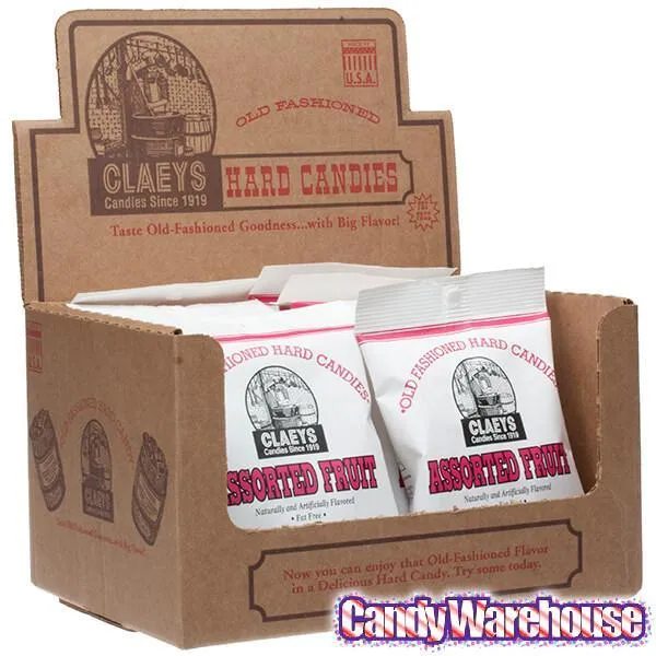 Claeys Hard Candy Drops Bags - Assorted Fruits: 12-Piece Box