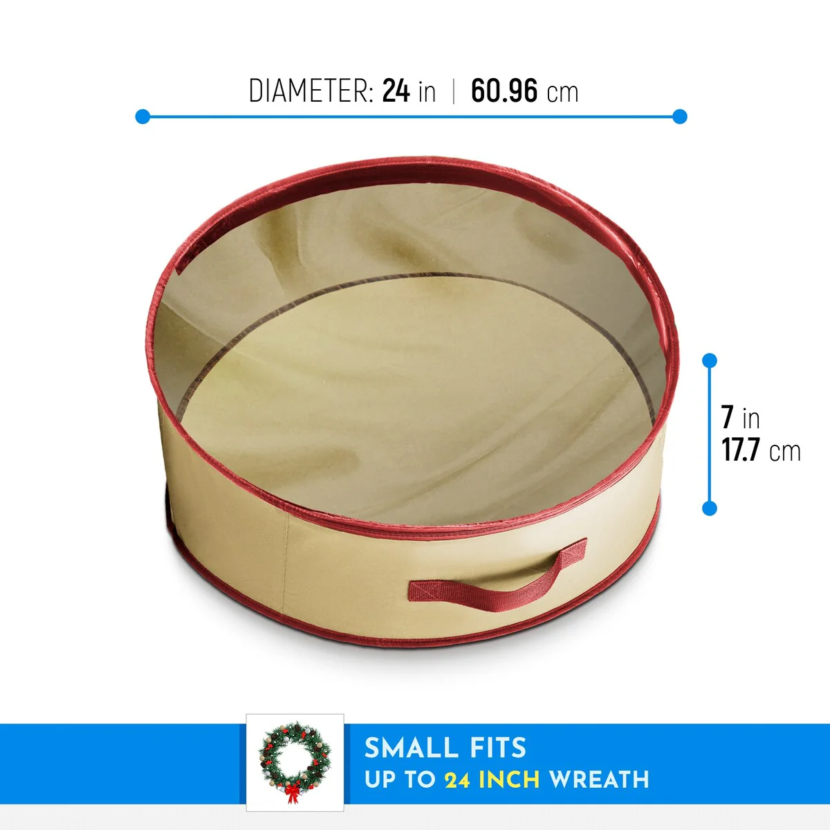 • WREATH VISIBILITY-The top of the bags is of clear PVC, exposing the contents. Always know what you have stored away to avoid duplicate purchases. Dimensions: 24" x 24" x 7".