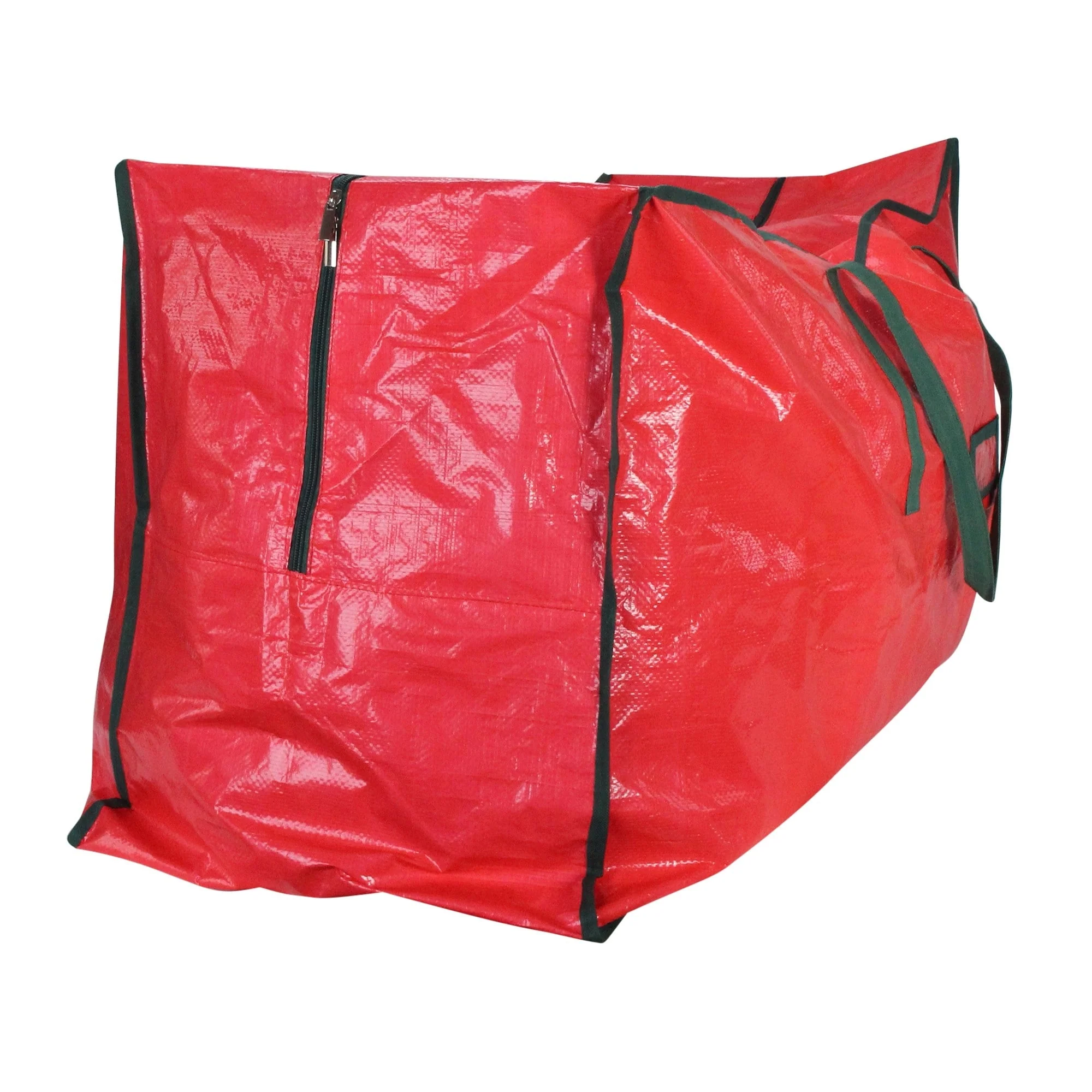 Get organized this holiday season with this canvas multipurpose Christmas storage bag! This sturdy and spacious bag is perfect for storing all of your holiday decorations including wreaths garlands ornaments and more. The heavy handles make it easy to carry while the zipper closure ensures that your items stay secure and protected. The festive red and green design will add a touch of holiday cheer to your storage space. Don't let clutter take over your home this Christmas - store everything neatly in this versatile storage bag! Features: Multipurpose storage bag. Can hold up to a 7.5 foot tree. Made with durable tear resistant and waterproof materials. Two heavy-duty handles that can support the weight of your holiday decorations. The zipper closure ensures that your items are securely stored and protected from dust dirt and other elements. The bag comes with a clear view ID tag which allows you to easily label and identify the contents of the bag. Recommended for indoor use only. Dimensions: 17"H x 22"W x 43"L. Material(s): polyethylene