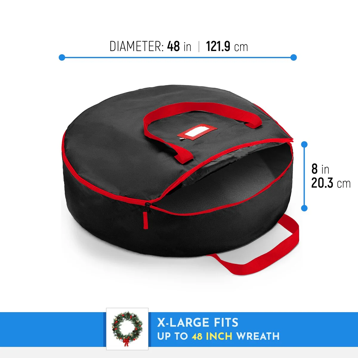 - HANDY FEATURES-Positioned on the inside, you will find two wreath-securing Velcro straps, preventing the wreath from moving about and losing its form and shape. Located on the forefront of the bag is a name tag for immediate recognition of the interior, saving you the trouble of opening and closing each one separately.