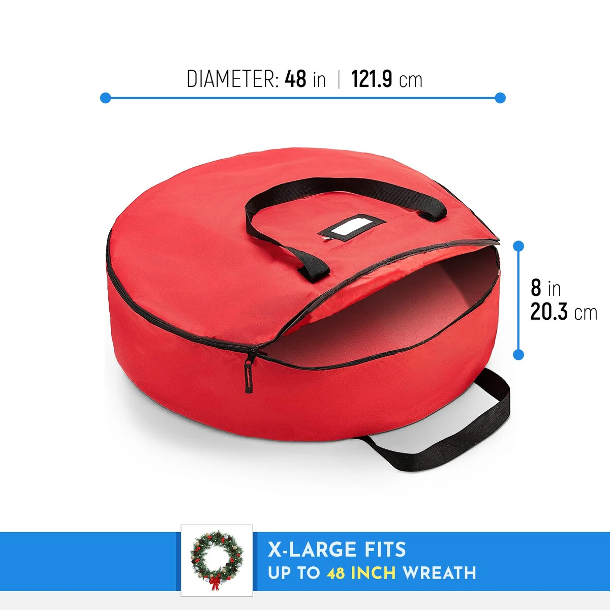48 in. Red Christmas Tear Proof Artificial Wreath Storage Bag - 48 inch
