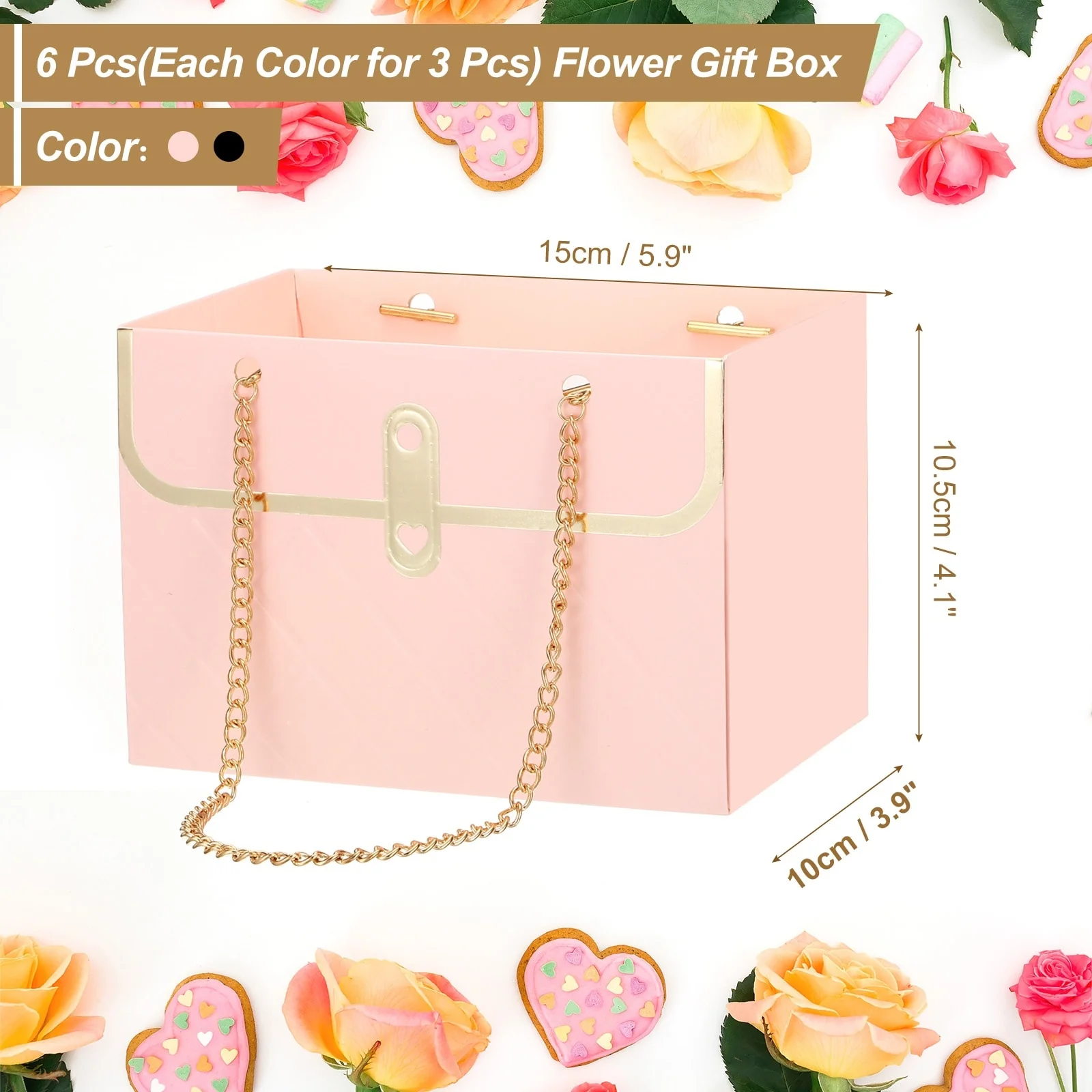These flower gift bags come in 6 Pcs, which measure 5.9" x 3.9" x 5.5 x 4.1"/15 x 10 x 10.5cm(L*W*H), Paper, Pink/White/Black color, and sufficient quantity can satisfy your different use and replacement demands, allowing you to hold flowers, or put and other gifts.