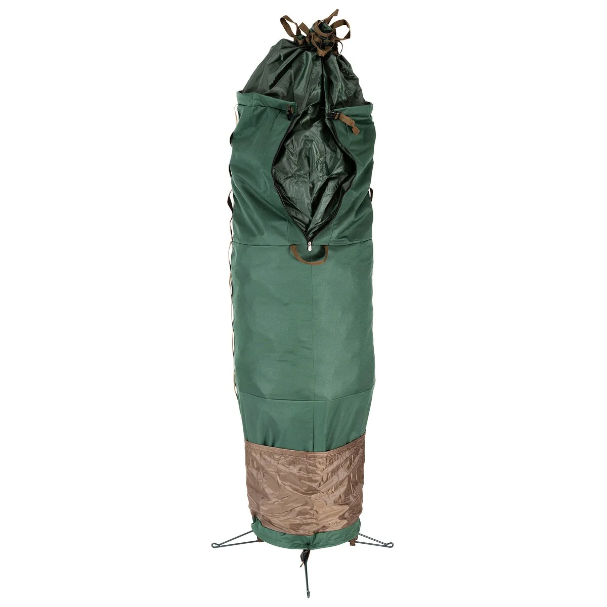 Stowing your Christmas tree just became a lot easier with this storage bag. No need to disassemble your tree. Simply attach the storage bag directly to your existing tree stand then at the end of the season simply open the skirt around the tree remove the decorations pull the bag up around the tree. Tighten the top and store for next year! With durable construction using top-notch quality material this functional accessory will be worth the buy for sure. Product Features: Artificial Christmas tree storage bag. Color(s): green brown red and black. Easily pulls over your tree. Trees up to 48" bottom diameter. Fits most artificial trees up to 7.5 feet tall. Zipper closure ensure the tree stays clean and in one place. Attaches to your existing tree stand and compresses at base. Id tag allows easy identification of the bag's contents (tag not included). Features heavy-duty carrying handles which make moving the bag super easy. Compression straps - helps compress your tree for extra storage space and easier transport. Dimensions: 89"H x 30"W x 30"D. Material(s): polyester/nylon. Note: bag only tree is not included