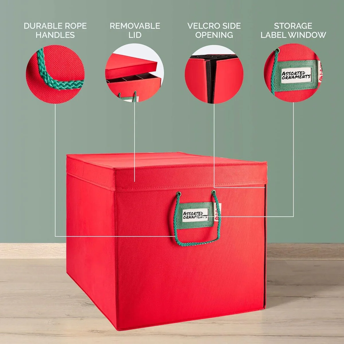 Heavy Duty Fabric Christmas Ornament Storage Container - Holds up to 72 - 4 Inch Ornaments