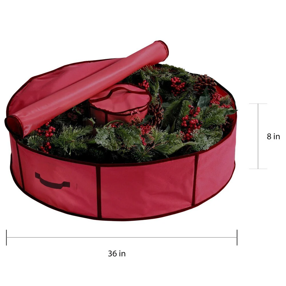 - GREAT WAY TO STAY ORGANIZED: If you've been looking for the best way for store your Christmas wreaths after the holidays have ended, then your search is finally over! Thats because our Christmas wreath storage bag measures 36 inches wide by 8 inches tall so you can hold Christmas and Holiday wreaths measuring up to 36 inches wide