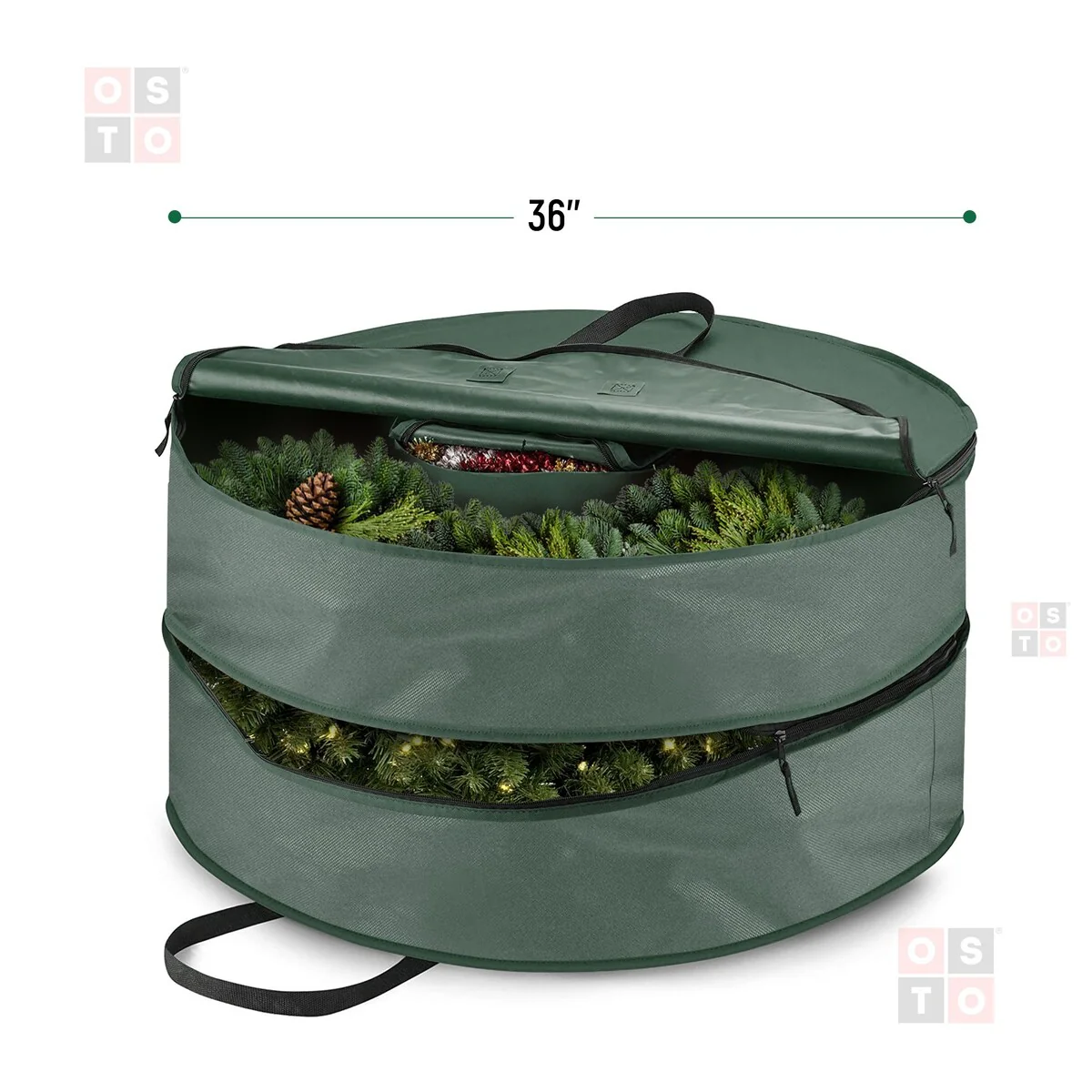 Double Attached Christmas Wreath Storage Bag Holder,36"600D Fabric - Green