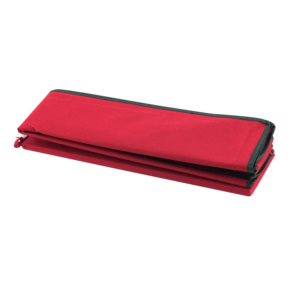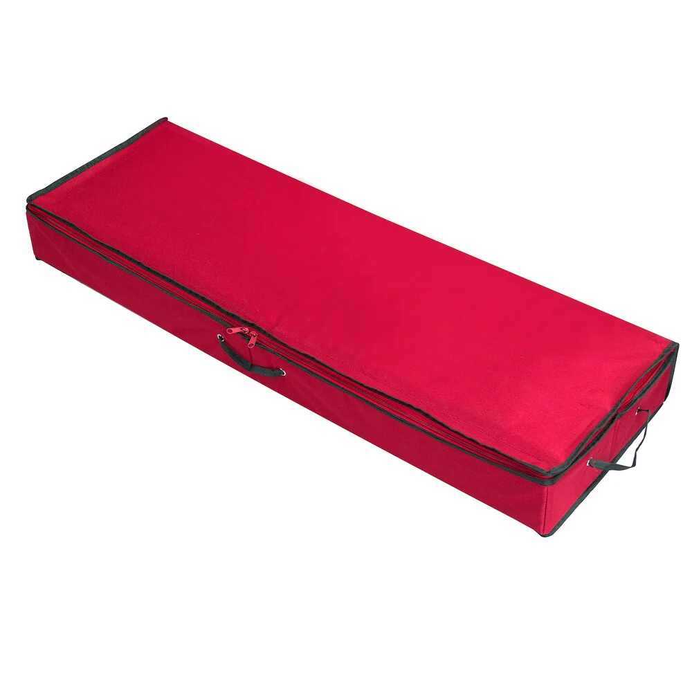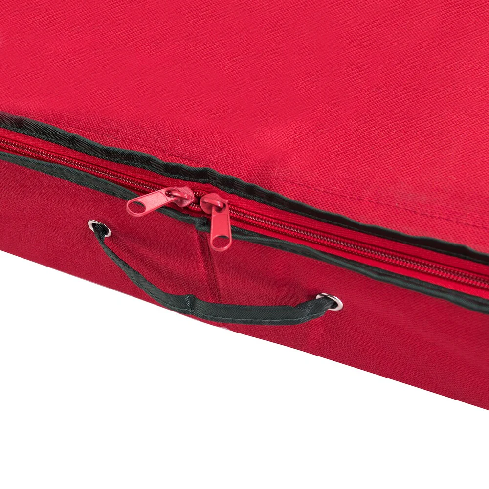 • Red holiday supply organizer protects up to eight wrapping paper rolls from wrinkles and tears