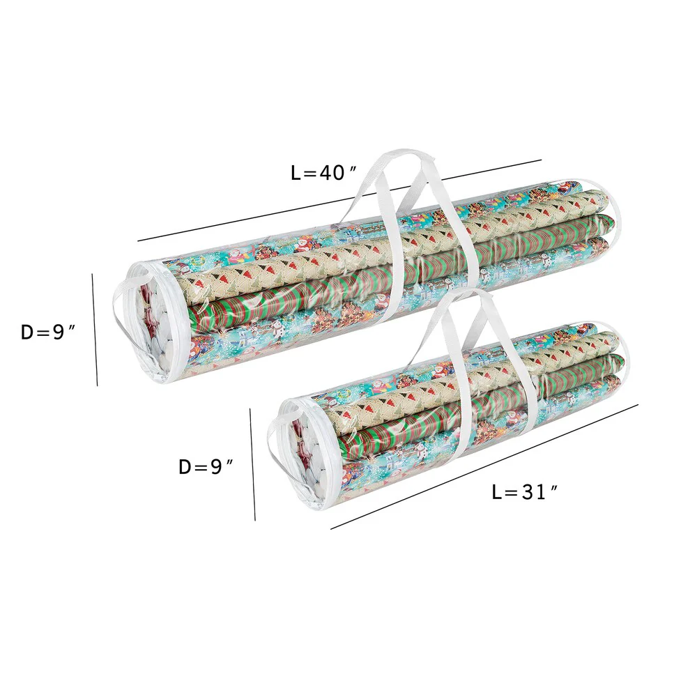 - Makes putting away and finding your holiday wrappings easy year after year.