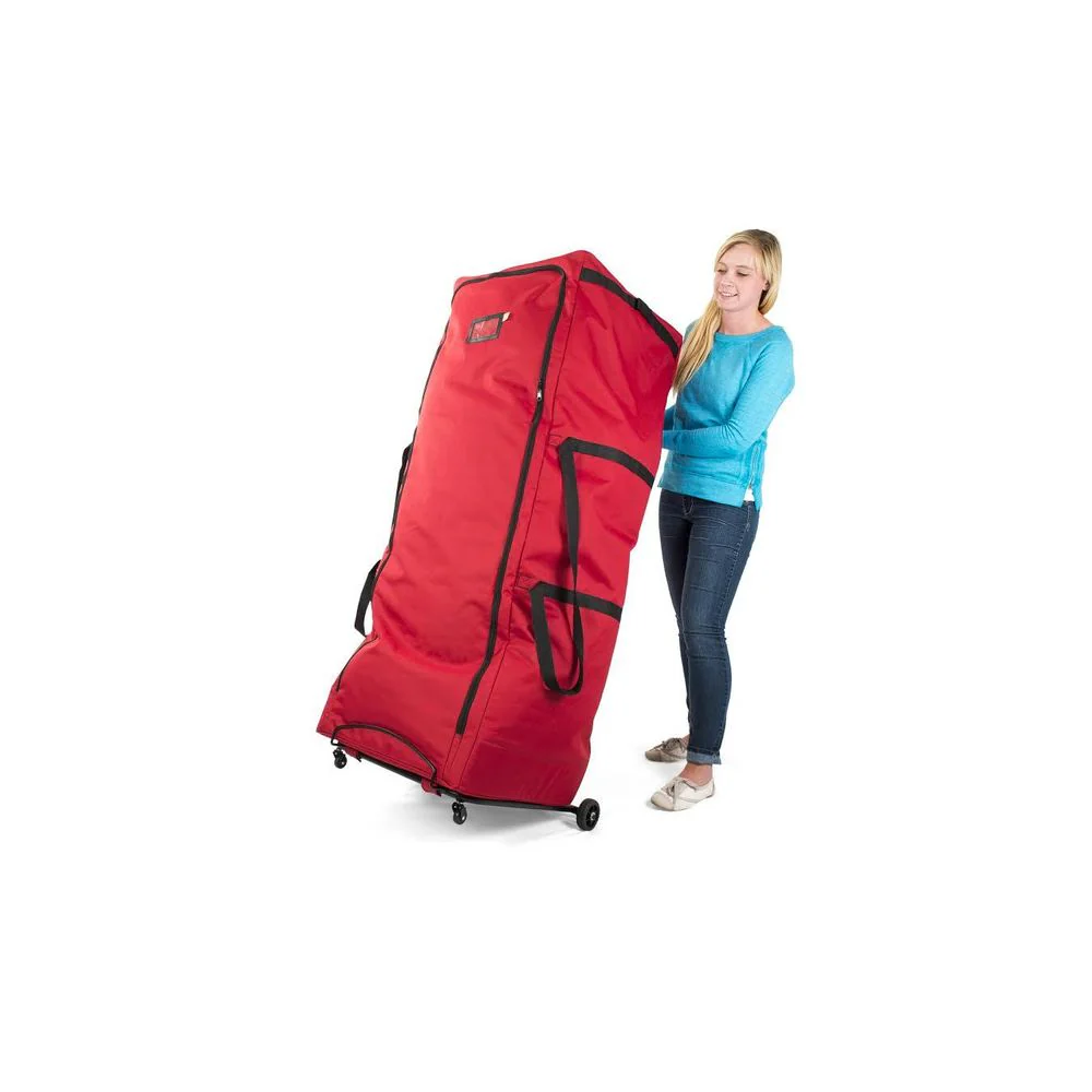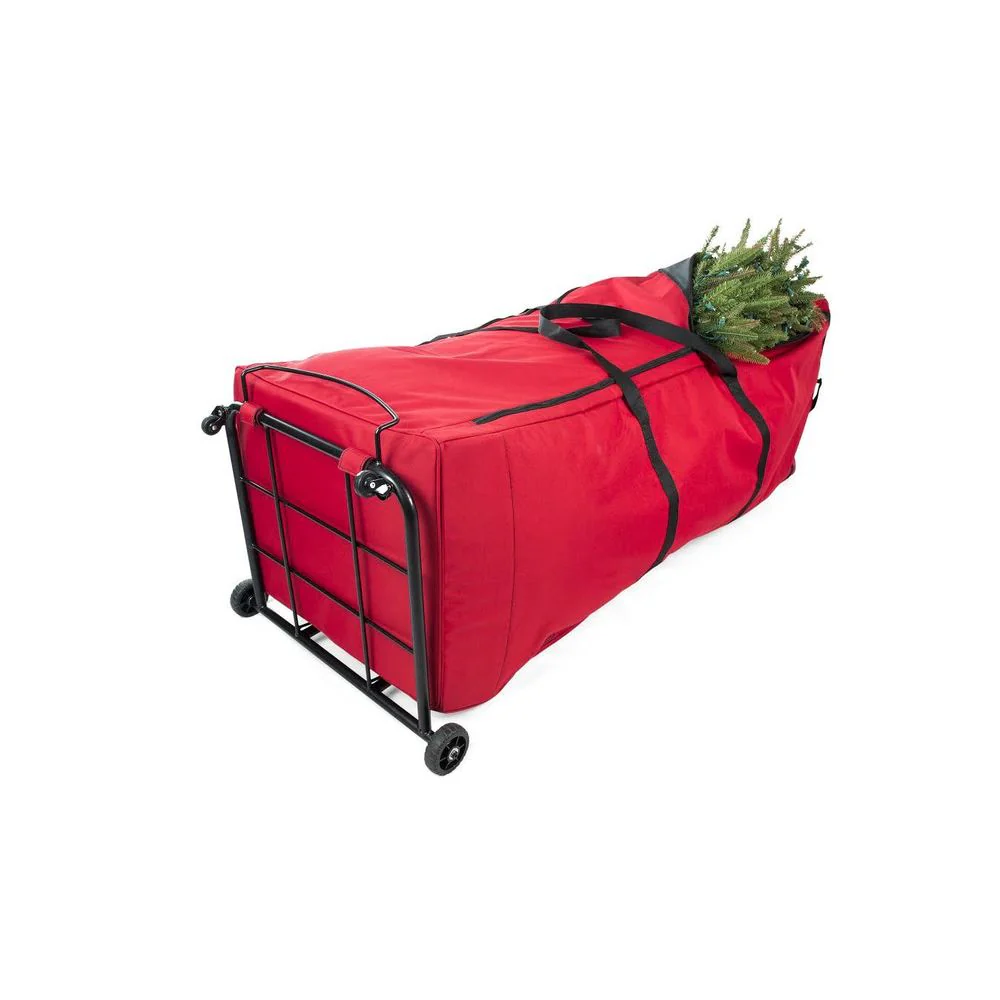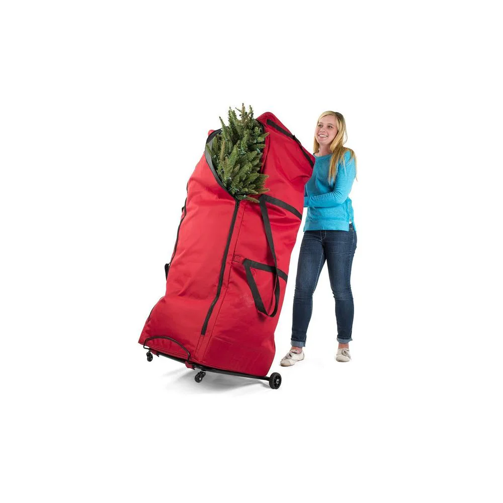 Pack your tree and move it quickly into storage with this Upright Tree Storage Duffel! This roomy tree storage bag will easily store and protect your Christmas tree! This Christmas tree storage bag is constructed of heavy-duty polyester with a PVC end for extra strength which will protect your expensive artificial Christmas tree from moisture and dust. Make setting up and taking down your artificial Christmas tree quick and easy with the Rolling Christmas Tree Storage Bag.•Rugged steel frame and 4 wheels offers support and protection for your tree while moving and storing•Compression straps help compress your tree for extra storage space and easier transport•Extra-large U-shape zipper opening provides greater access making it easier to load your tree•Extra large U- shape zipper opening provides greater access for easy loading•Accommodates artificial trees up to 9 ft tall•Measures: 60"L x 22"W x 22"H