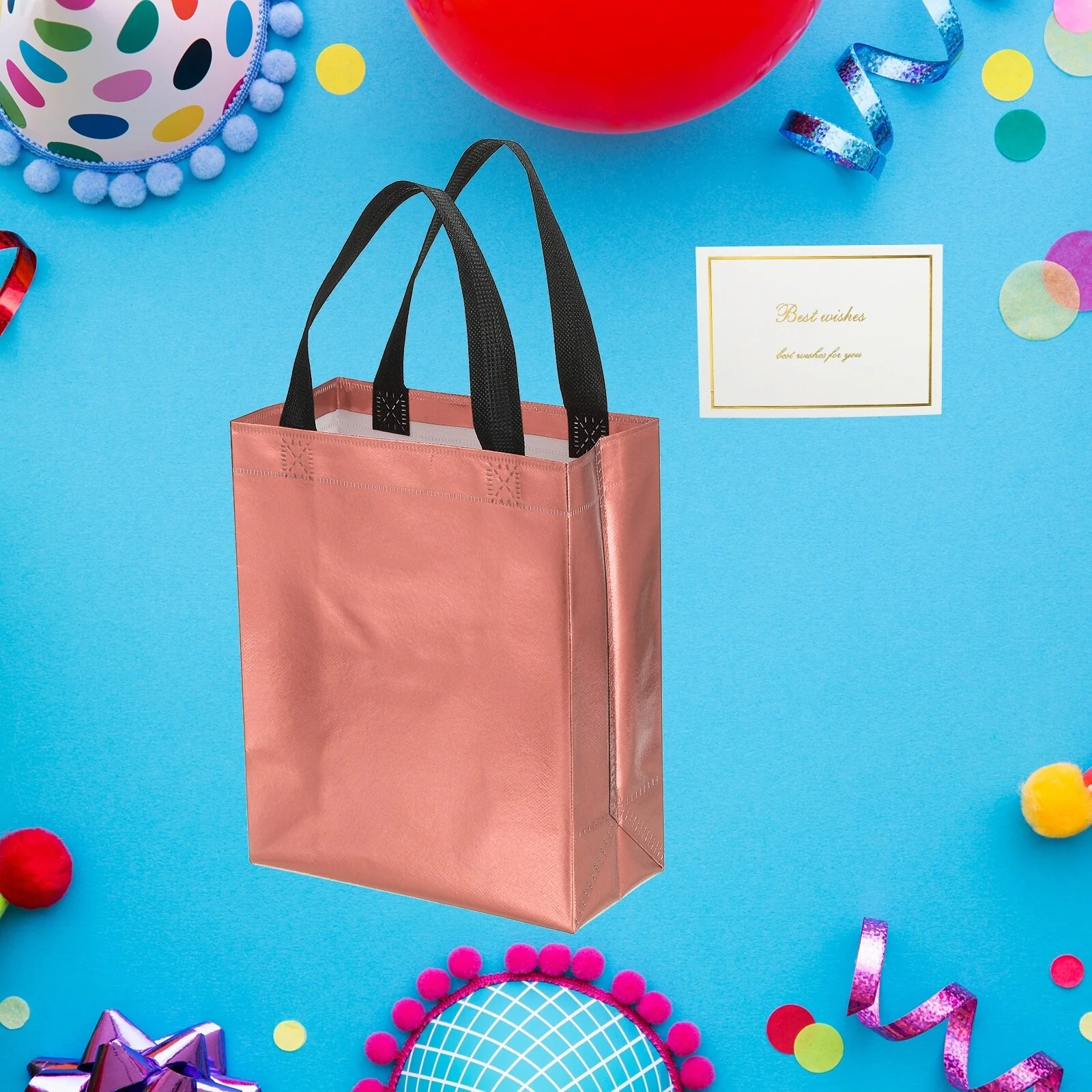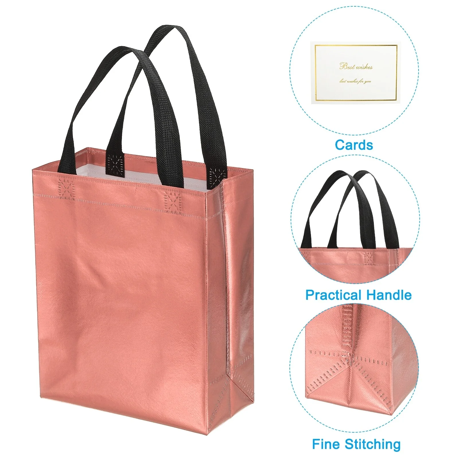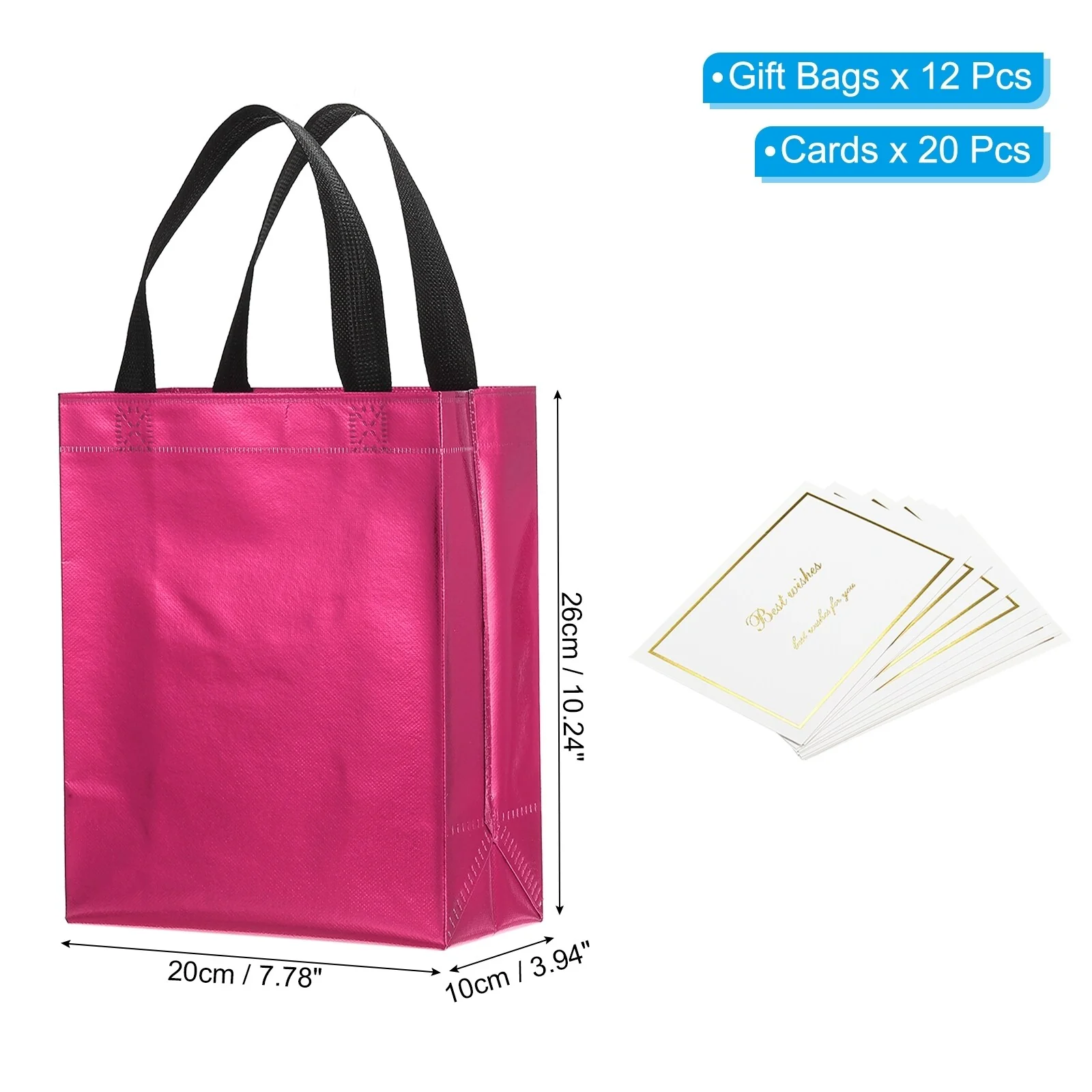 Crafted from non-woven material with a metallic shiny finish, these gift bags offer both durability and style. Each bag comes with tissue, making it convenient for you to complete your gift presentation.