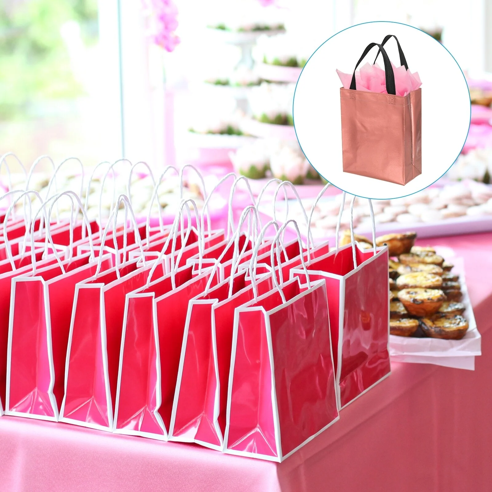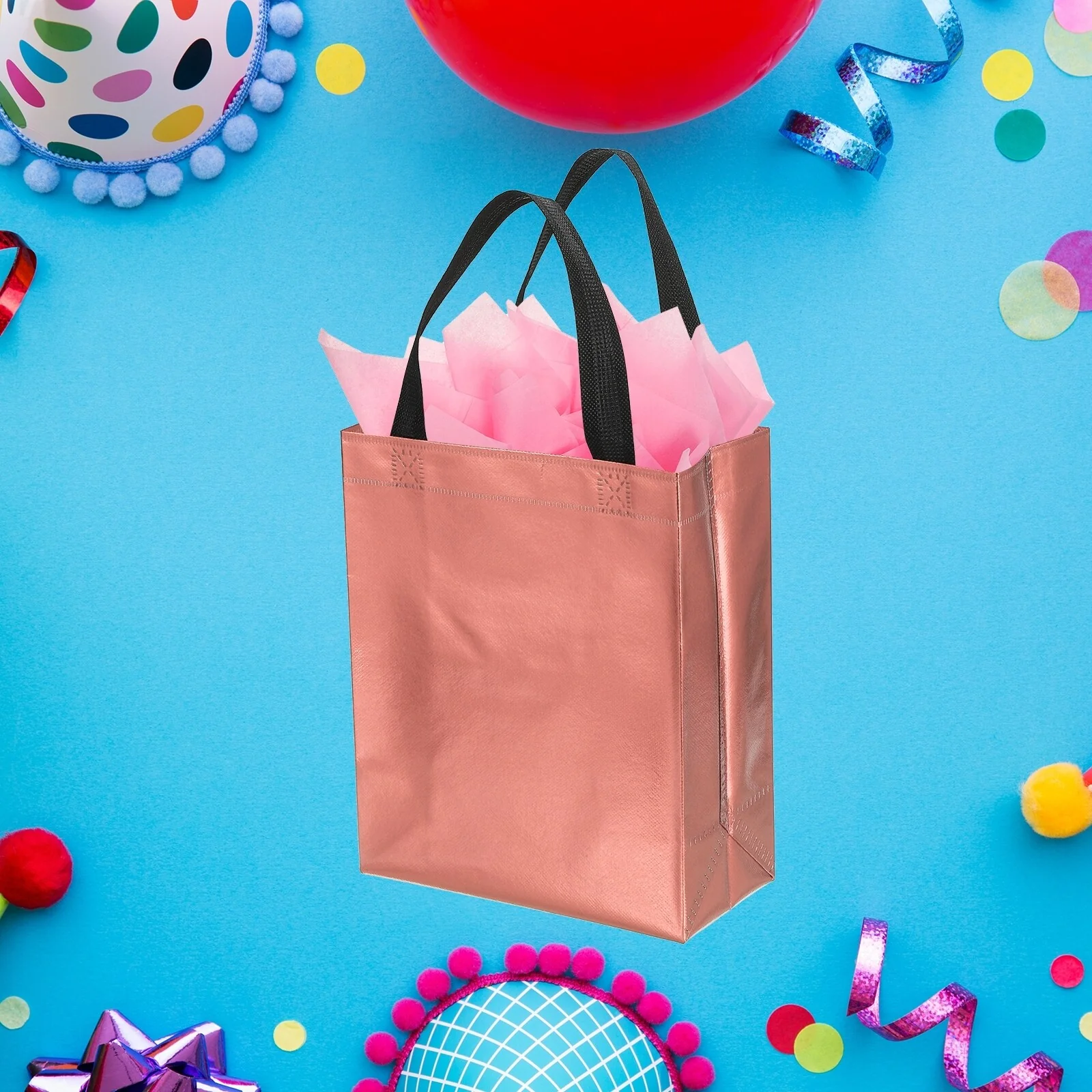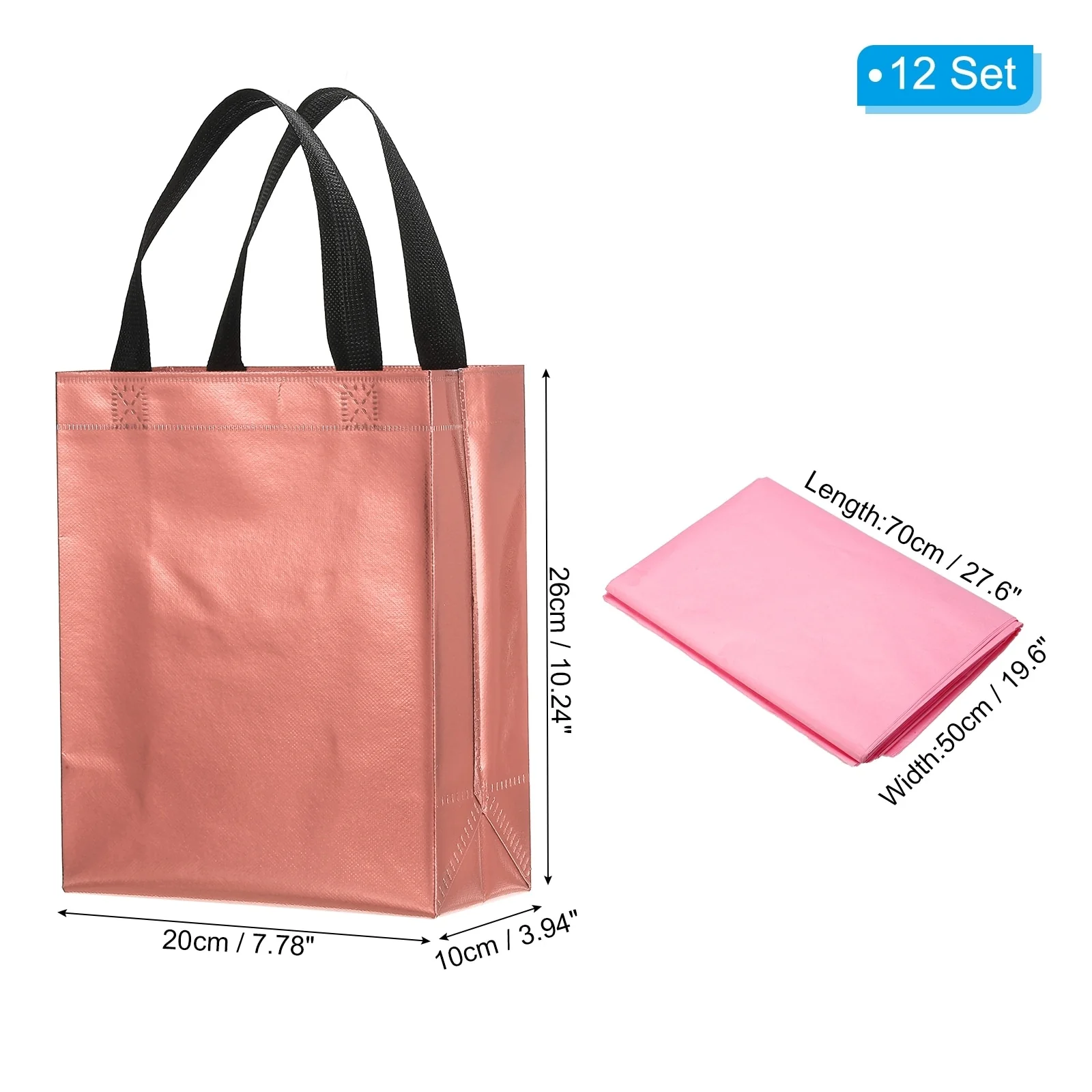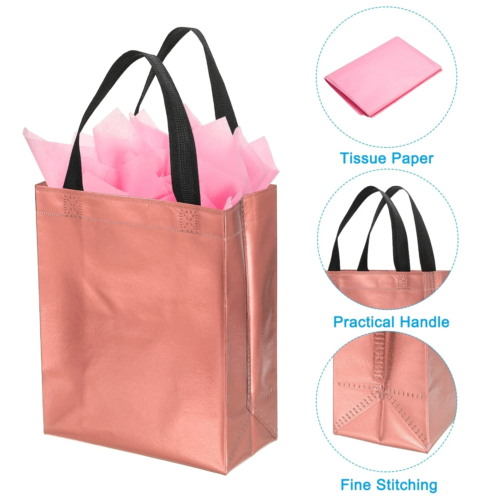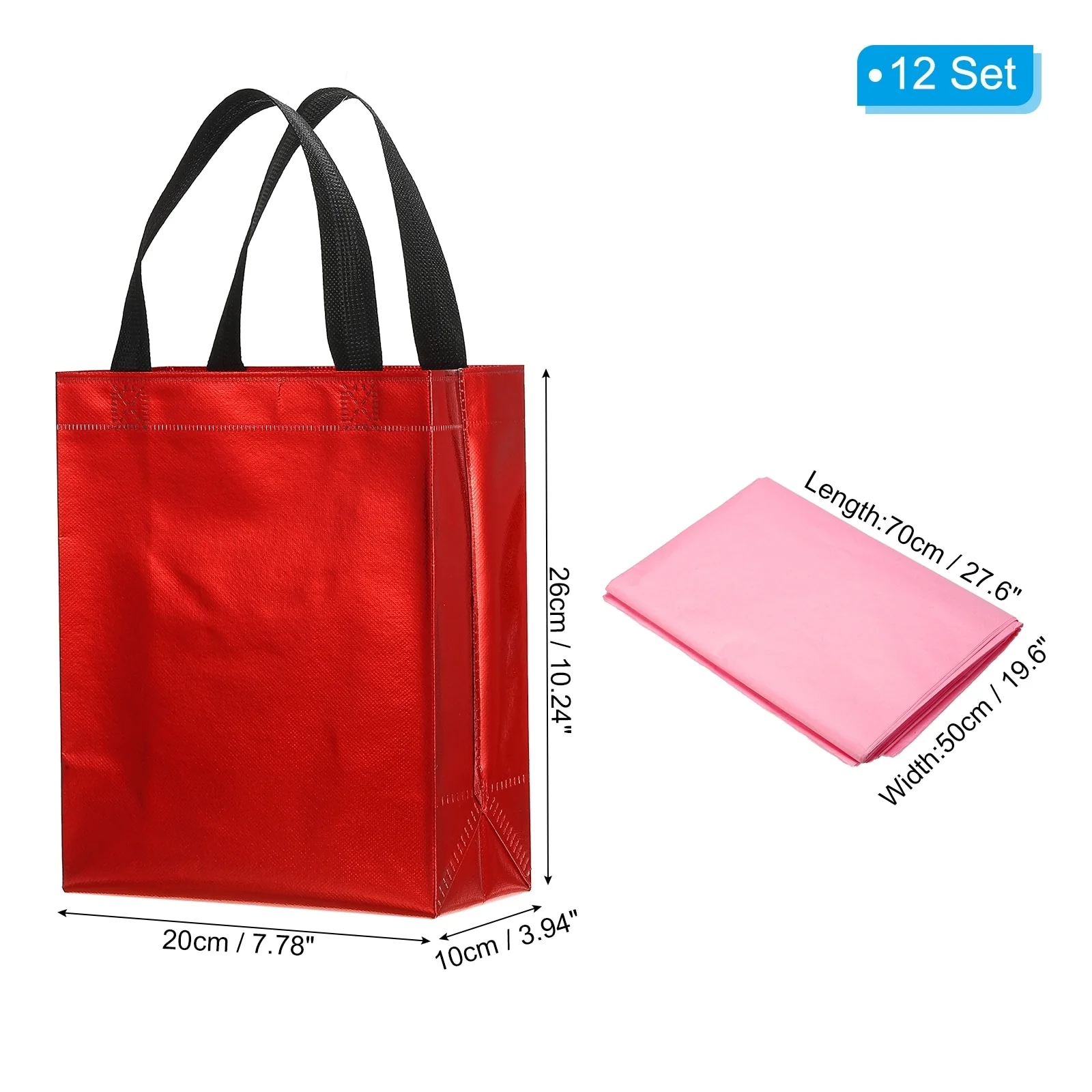Crafted from non-woven material with a metallic shiny finish, these gift bags offer both durability and style. Each bag comes with tissue, making it convenient for you to complete your gift presentation.
