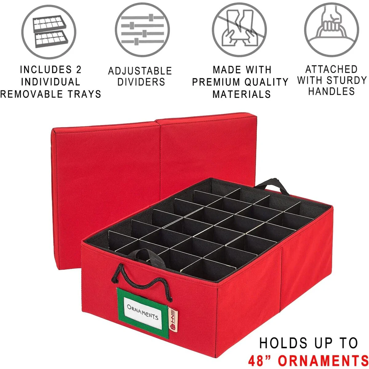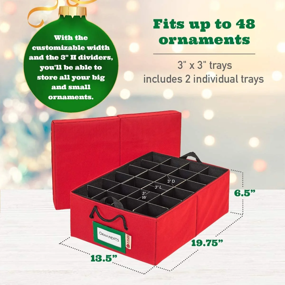 Heavy Duty Fabric Christmas Ornament Storage Container - Holds up to 48 - 3 Inch Ornaments