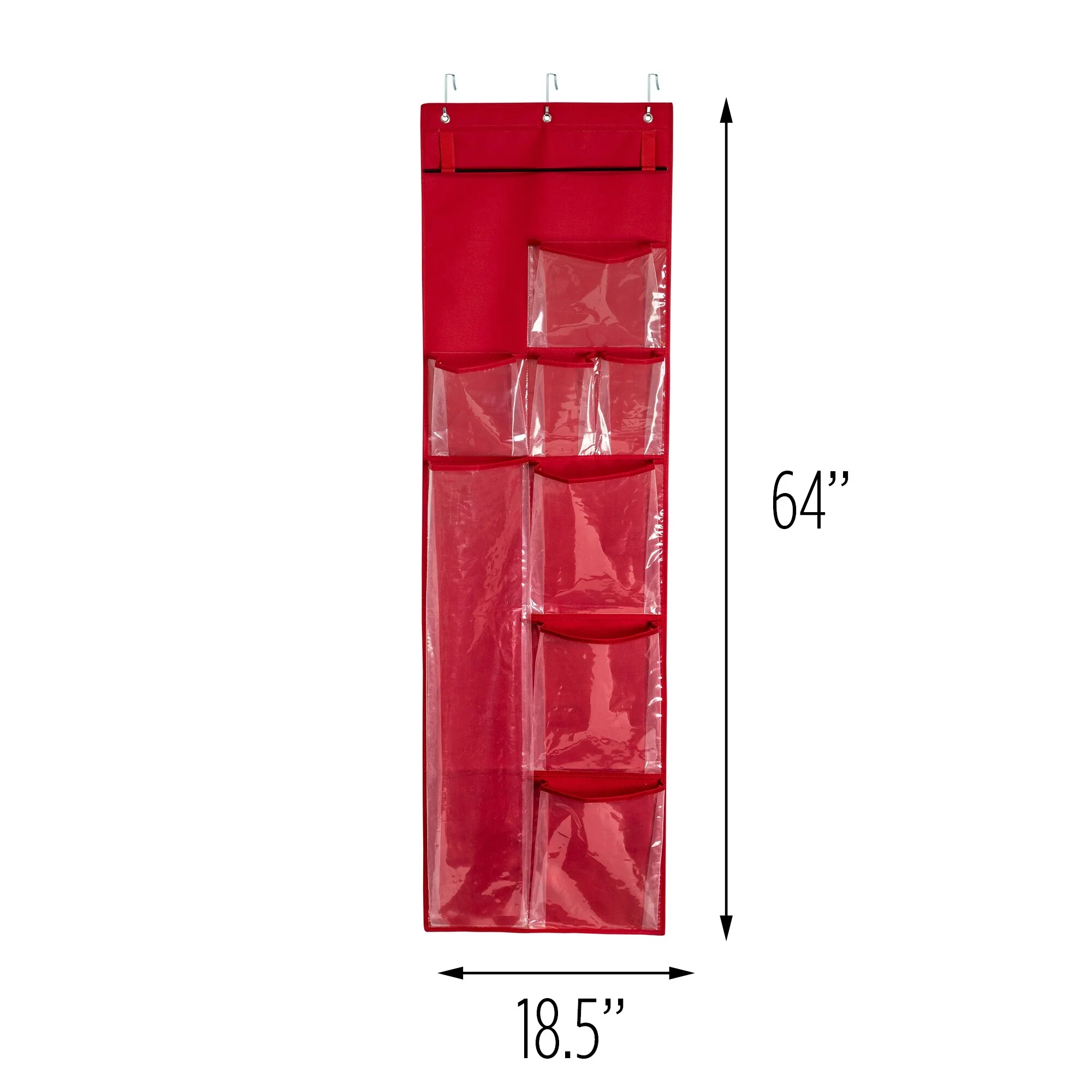 - 3 hooks hang over any standard sized door to maximize space