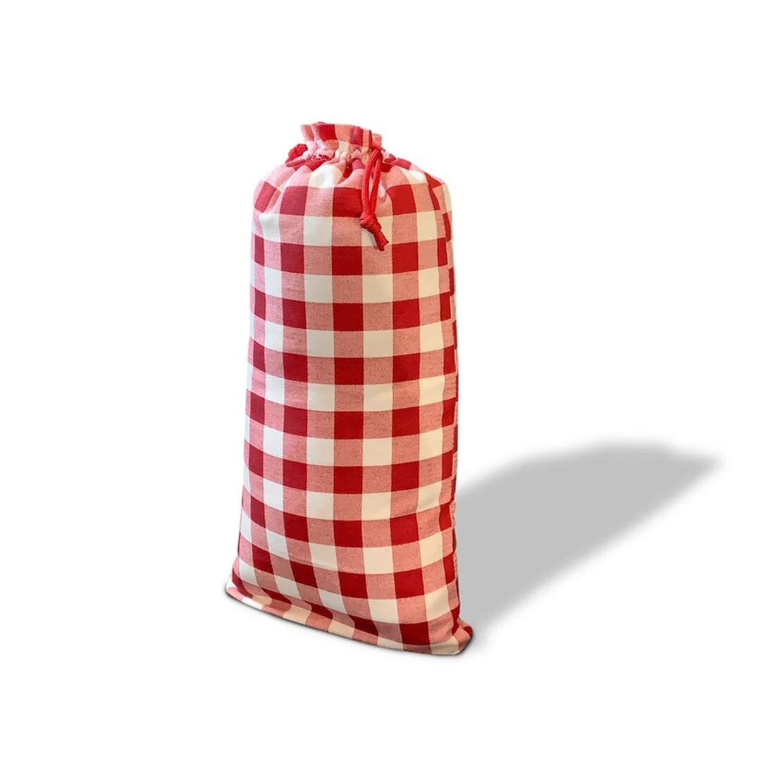 Introducing our exquisite Plaido Santa Sack, a meticulously crafted drawstring cotton gift bag. This hand-sewn masterpiece boasts opulent luxury with its satin lining, promising heirloom-quality charm. The double cord feature ensures effortless opening and closing, adding convenience to your festive preparations. Our commitment to durability shines through the reinforced seams, guaranteeing longevity. Crafted from upholstery-weight 100% cotton, this Santa sack embodies both strength and elegance. We take pride in our workmanship and stand by it with a lifetime warranty. Elevate your holiday gifting experience by ordering now, and allow us to help you create cherished memories this Christmas. Make this festive season truly remarkable with this Santa Sack gift bags, a timeless symbol of your thoughtfulness and care.