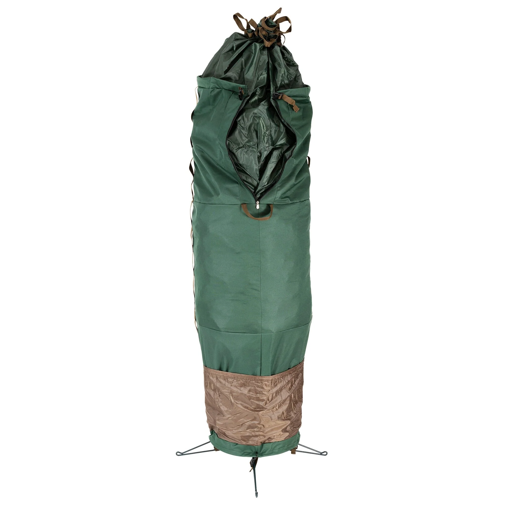 We understand your frustration with your artificial Christmas tree. Each year, set up and take down of your tree tests your patience as you assemble each section and try to find the plugs to make all the lights work. You force a large tree into a cardboard box that is too small to fit your Christmas tree, and break your back carrying the box in and out of storage. This repeated assembly and disassembly, along with that taped together cardboard box, shortens the lifespan of your Christmas tree. The good news is that it doesn't have to be this difficult or time consuming. The upright Christmas tree storage bag is perfect for artificial Christmas trees that up to 7.5ft. tall. Vertical storage for Christmas trees allows you to keep your tree assembled, already cutting your setup and take down time in half. Pair that with the space-savings you'll have from storing your tree standing up, with the ability to use a rolling tree stand so you can wheel your Christmas tree container right into storage, and suddenly the task you once hated becomes a whole lot easier. Next year, when set up your tree, simply bunch the xmas tree storage bags up at the base of your tree, securing it in The attached tree skirt, and your Christmas tree bag bag will be discreetly hidden from sight as if it weren't even on the tree to begin with. A Patented Product: Patent(s) 7,694,494 and 7,775,360