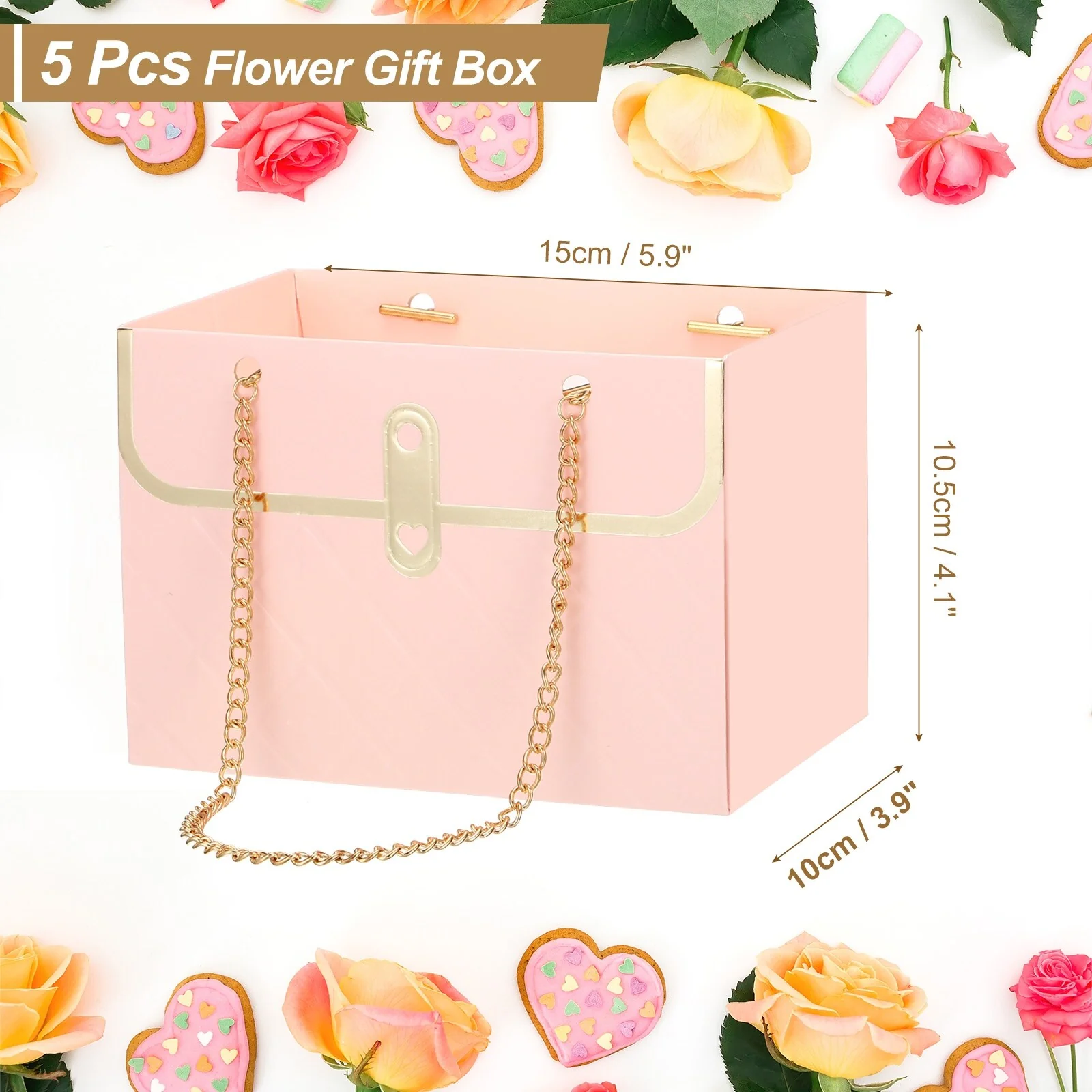 These flower gift bags come in 5 Pcs, which measure 5.9" x 3.9" x 5.5 x 4.1"/15 x 10 x 10.5cm(L*W*H), Paper, Pink color, and sufficient quantity can satisfy your different use and replacement demands, allowing you to hold flowers, or put and other gifts.