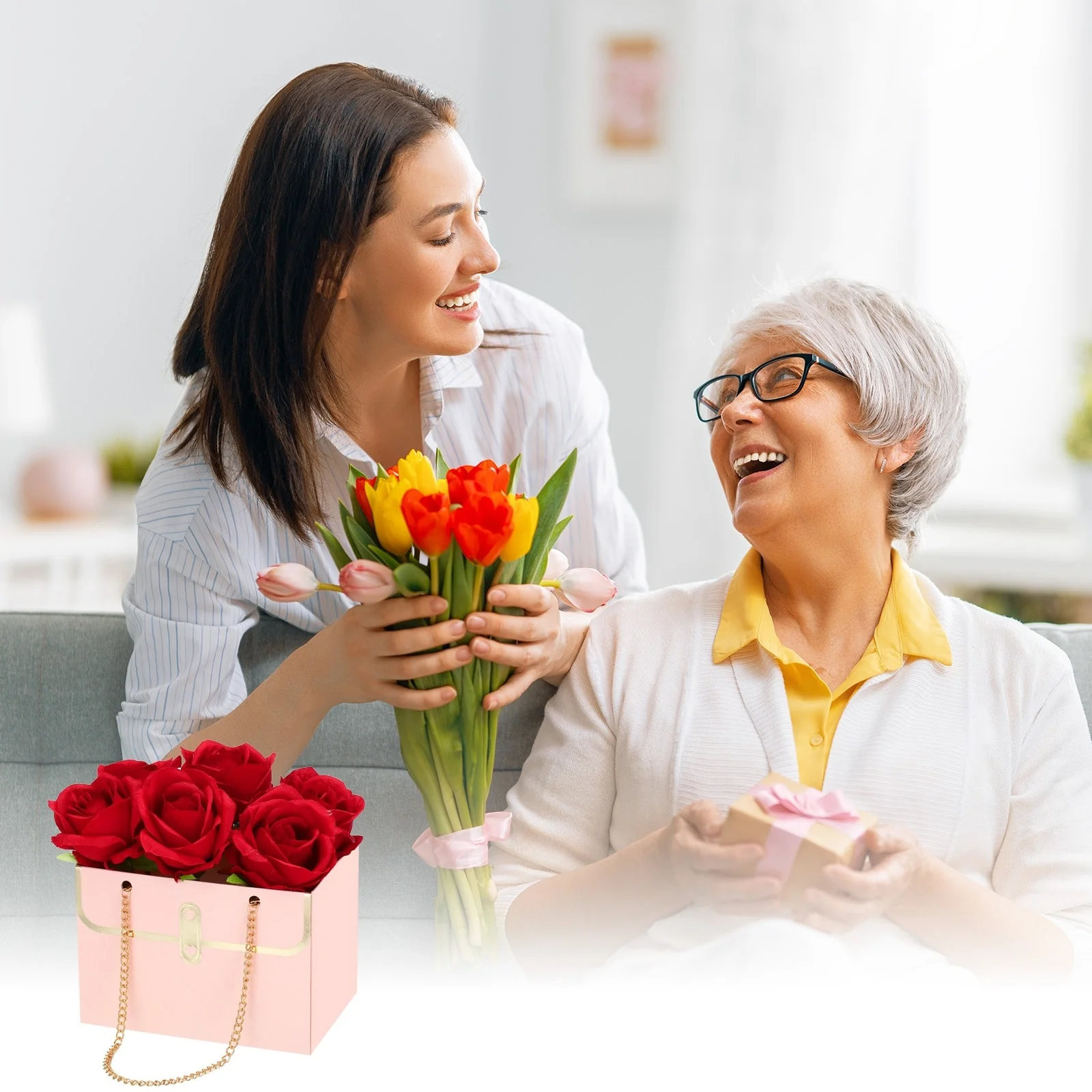 The flower paper gift boxes are specially designed for flower packaging, you can put a variety of different flowers to make them look more beautiful. These bouquet bags and flower boxes are designed in the shape of a handbag, which looks elegant and beautiful.