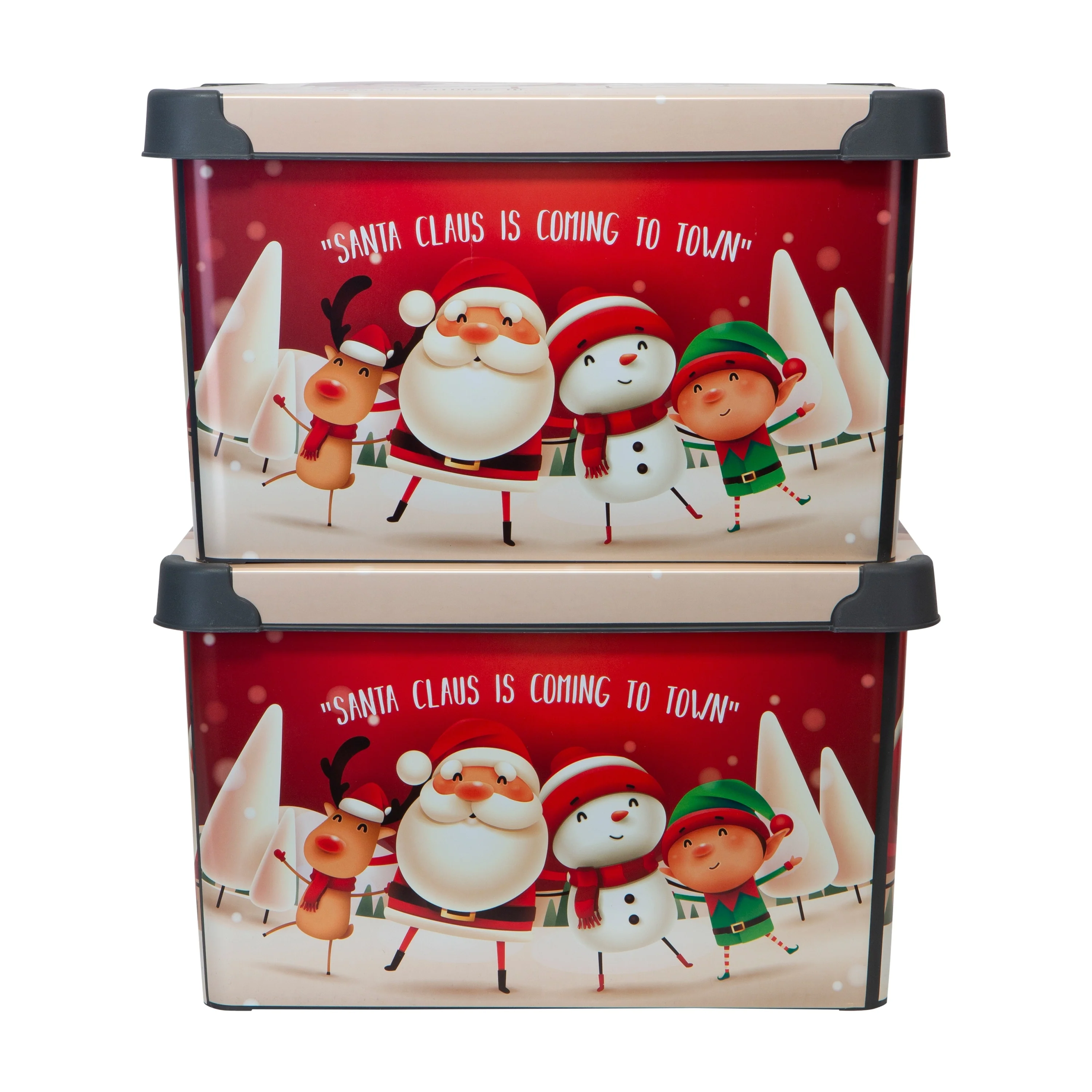 Keep your precious holiday décor safe on the off season with the Simplify Holiday festive storage tote bins! The plastic material allows the storage bin to protect what's inside from being crushed, dust, odors and water. Stackable design allows you to maximize your storage space, removable lid makes it easy to pack and unpack your items. The festive holiday print allows you to use for more than just a storage box, can be used as a big gift box or a holiday basket!