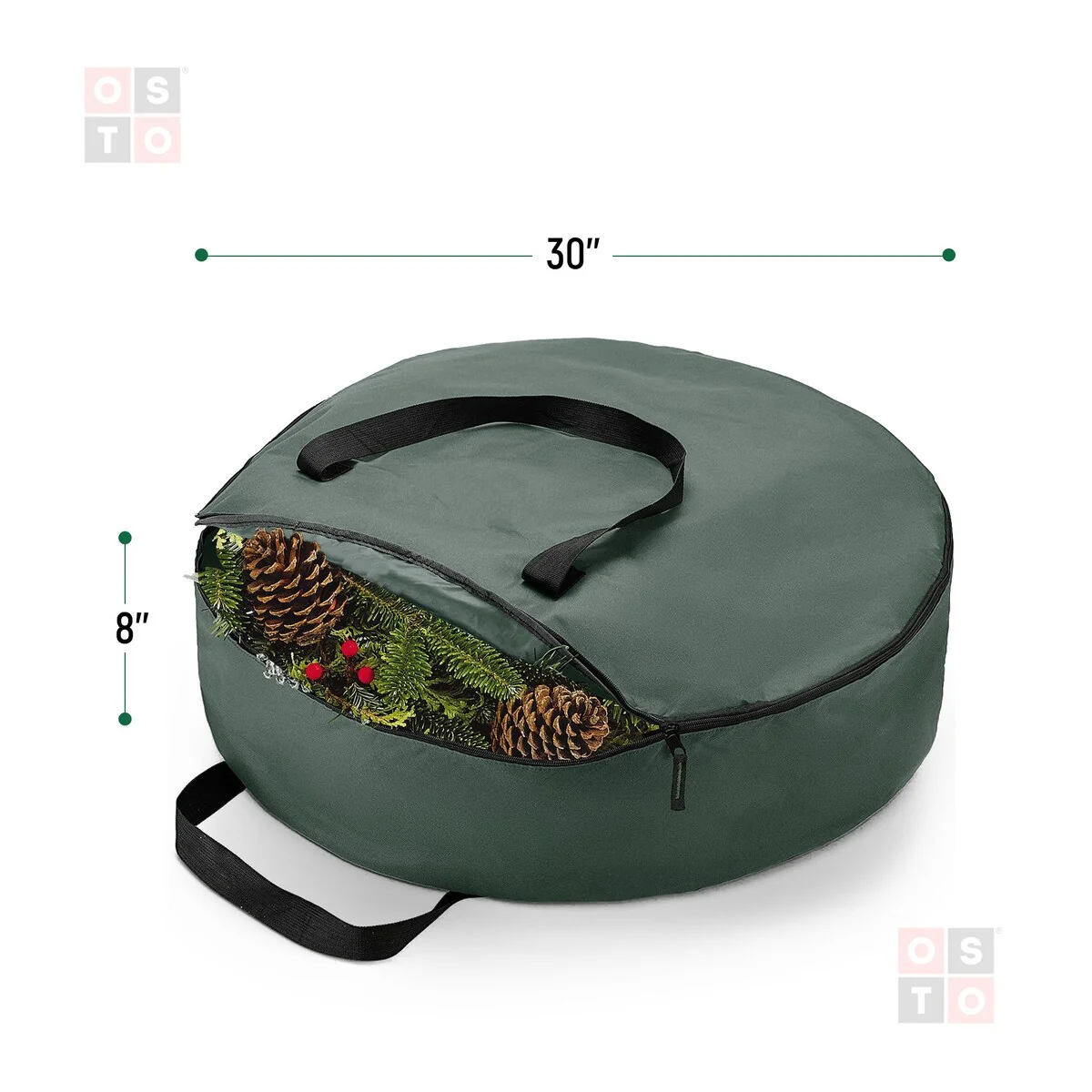 Superior Christmas Wreath Storage Bag Holder, 30"Tear Resistant - Green