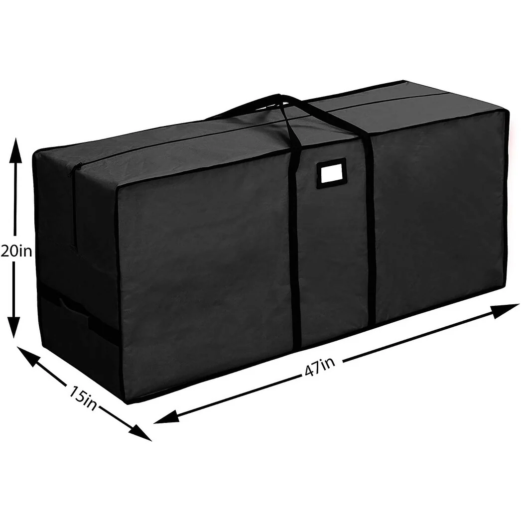 - Christmas tree storage bag measures 47"x15"x20 - made by 600D Waterproof canvas.