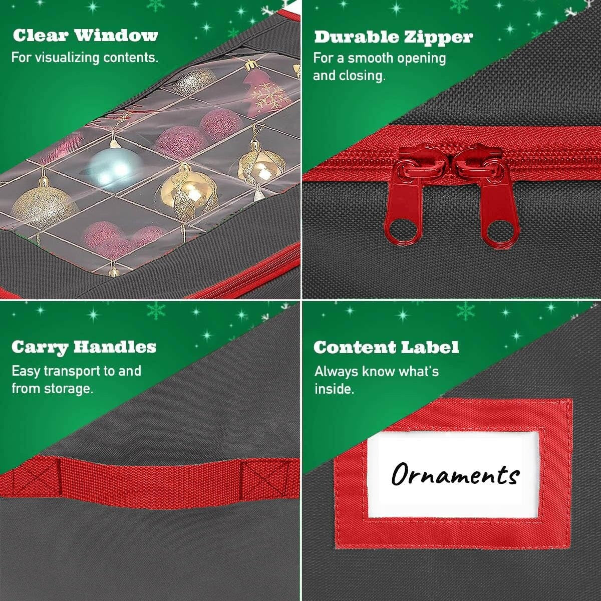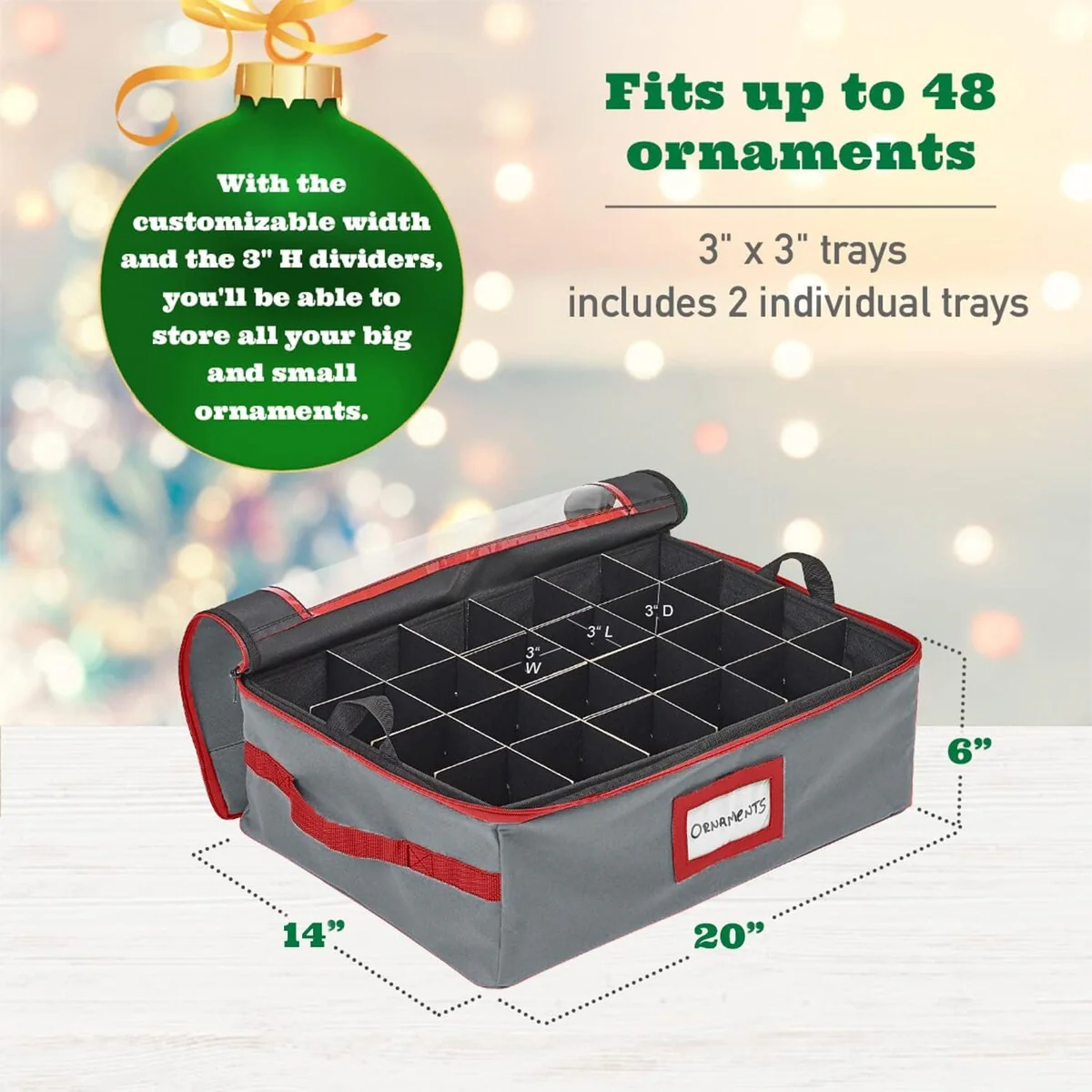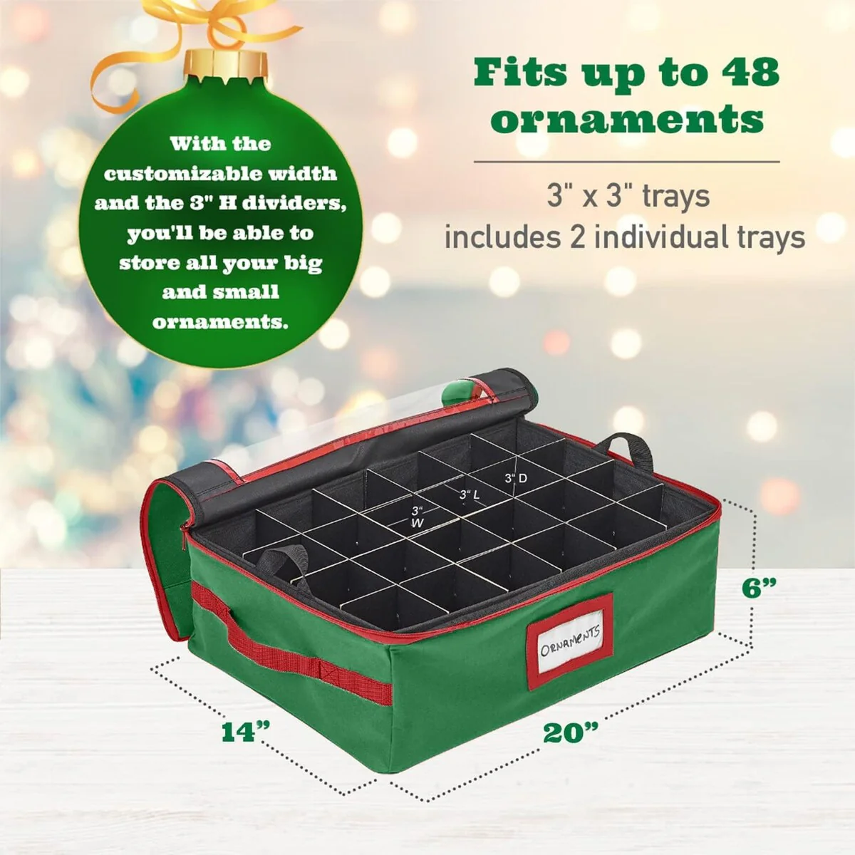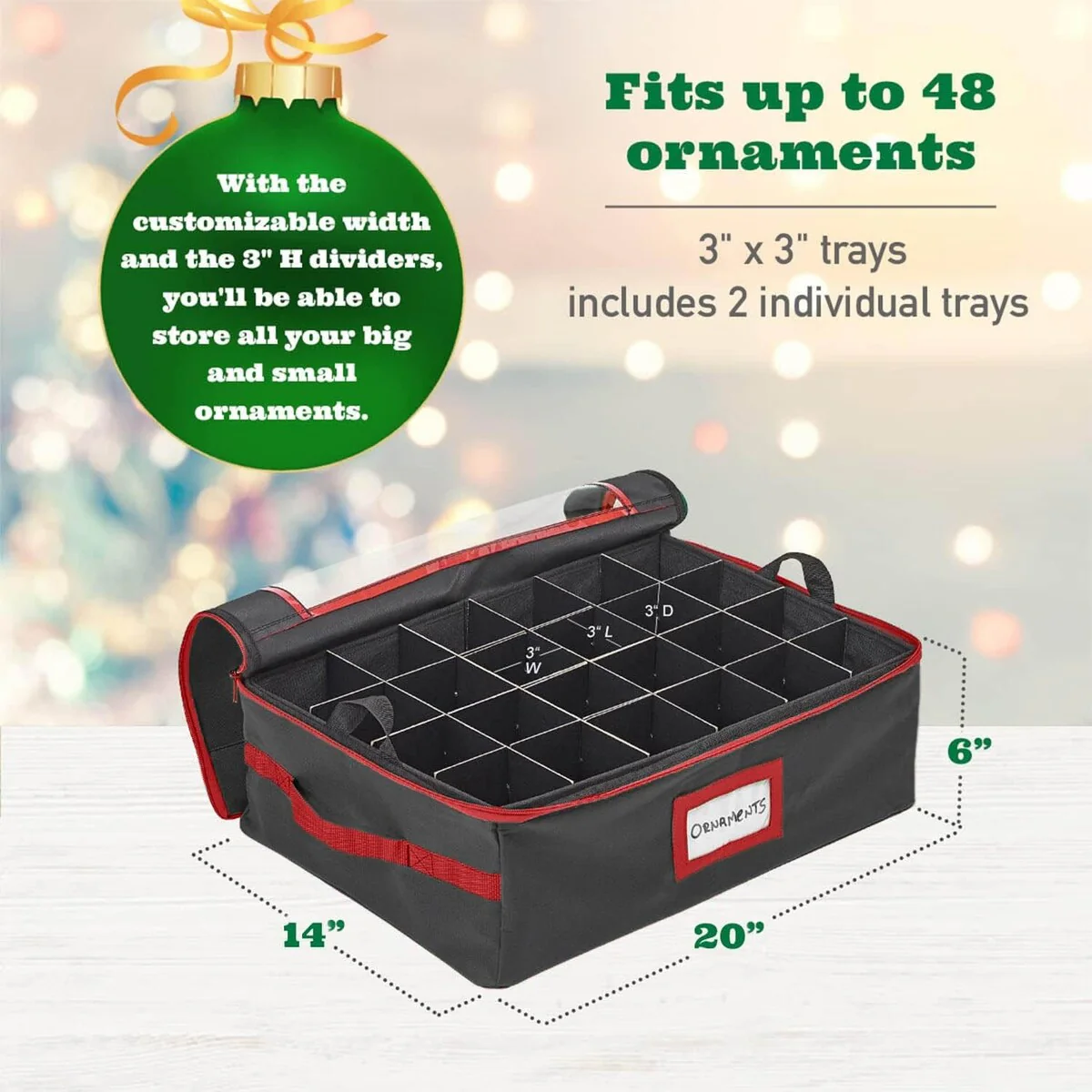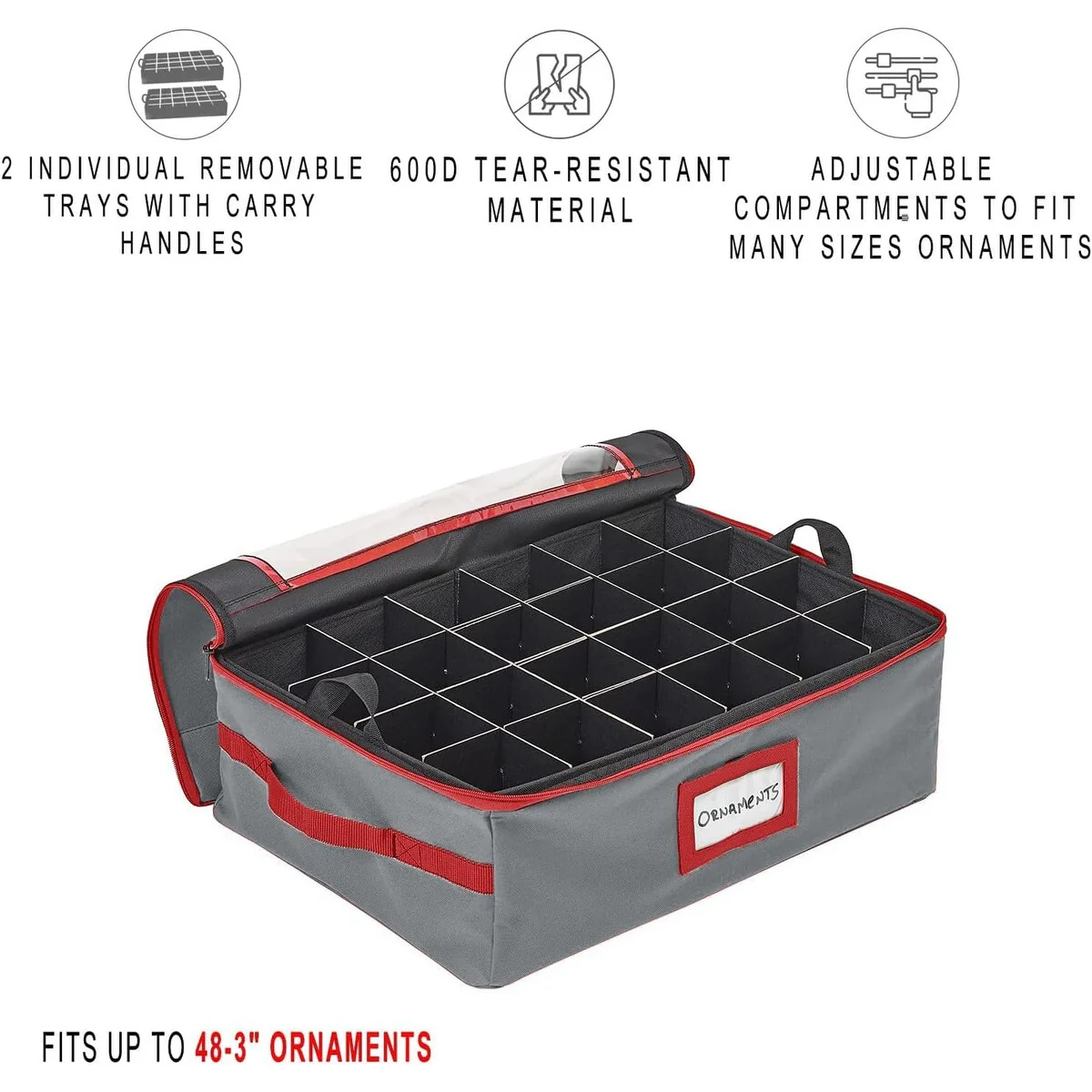 Premium Christmas Ornament Storage Container that Holds up to 48 - 3" Ornaments - Heavy-Duty 600D