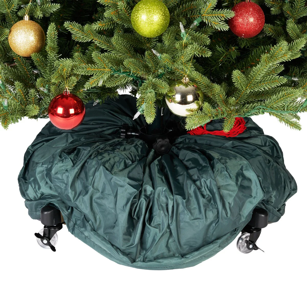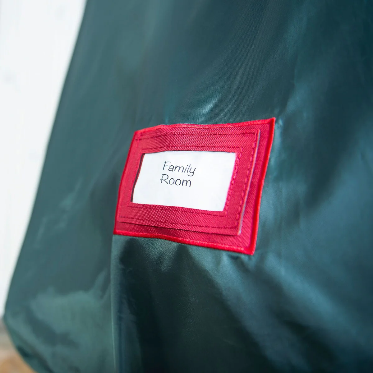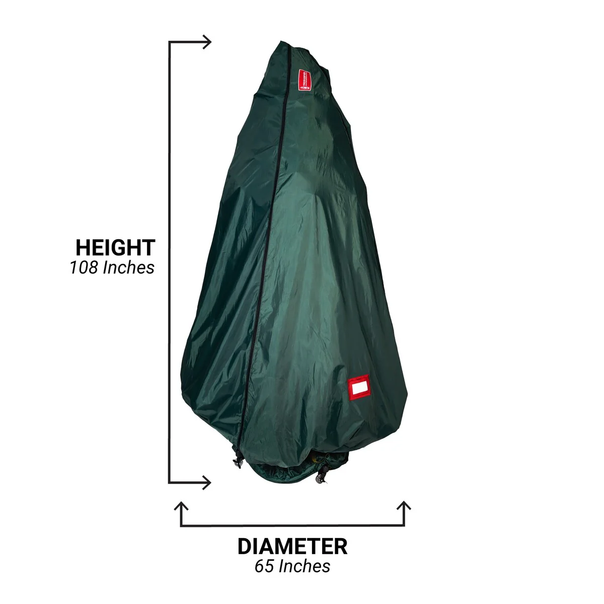 We understand your frustration with your artificial Christmas tree. Each year, set up and take down of your tree tests your patience as you assemble each section, try to find the plugs to make all the lights work, and move the ornaments around to try and get the same perfect look that you remember from last year. You force a large tree into a cardboard box that is too small to fit your Christmas tree, and break your back carrying the box in and out of storage. This repeated assembly and disassembly, along with that taped together cardboard box, shortens the lifespan of your Christmas tree. The good news is that it doesn't have to be this difficult or time consuming. The upright decorated Christmas tree storage bag is the perfect artificial Christmas tree storage bag with wheels for fully assembled and decorated trees up to 9ft. tall. Vertical storage for Christmas trees allows you to keep your tree assembled and decorated the perfect way, cutting away your set up and take down time. With the included rolling tree stand, set up and take down becomes as simple as rolling your Christmas tree container in and out of storage, and suddenly the task you once hated becomes a whole lot easier. Next year, when set up your tree, simply bunch the Christmas tree bag up at the base of your tree, securing it in the attached tree skirt, and your xmas tree storage bags will be discreetly hidden from sight as if it weren't even on the tree to begin with. A Patented Product: Patent(s) 7,694,494 and 7,775,360