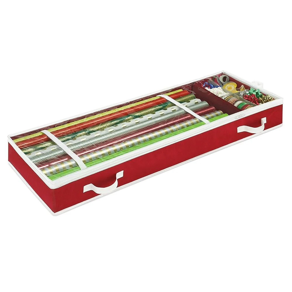 and an assortment of stationery items that you need to be on top of all the gifts that you need to send out to your loved ones.But will this leave your house messy and untidy? Not if you have a smart gift supplies organizer to store all your trinkets with ease.Built with a sturdy tear-resistant polyethylene material, the organizer can easily holds up to 14 rolls of gift wrapping paper