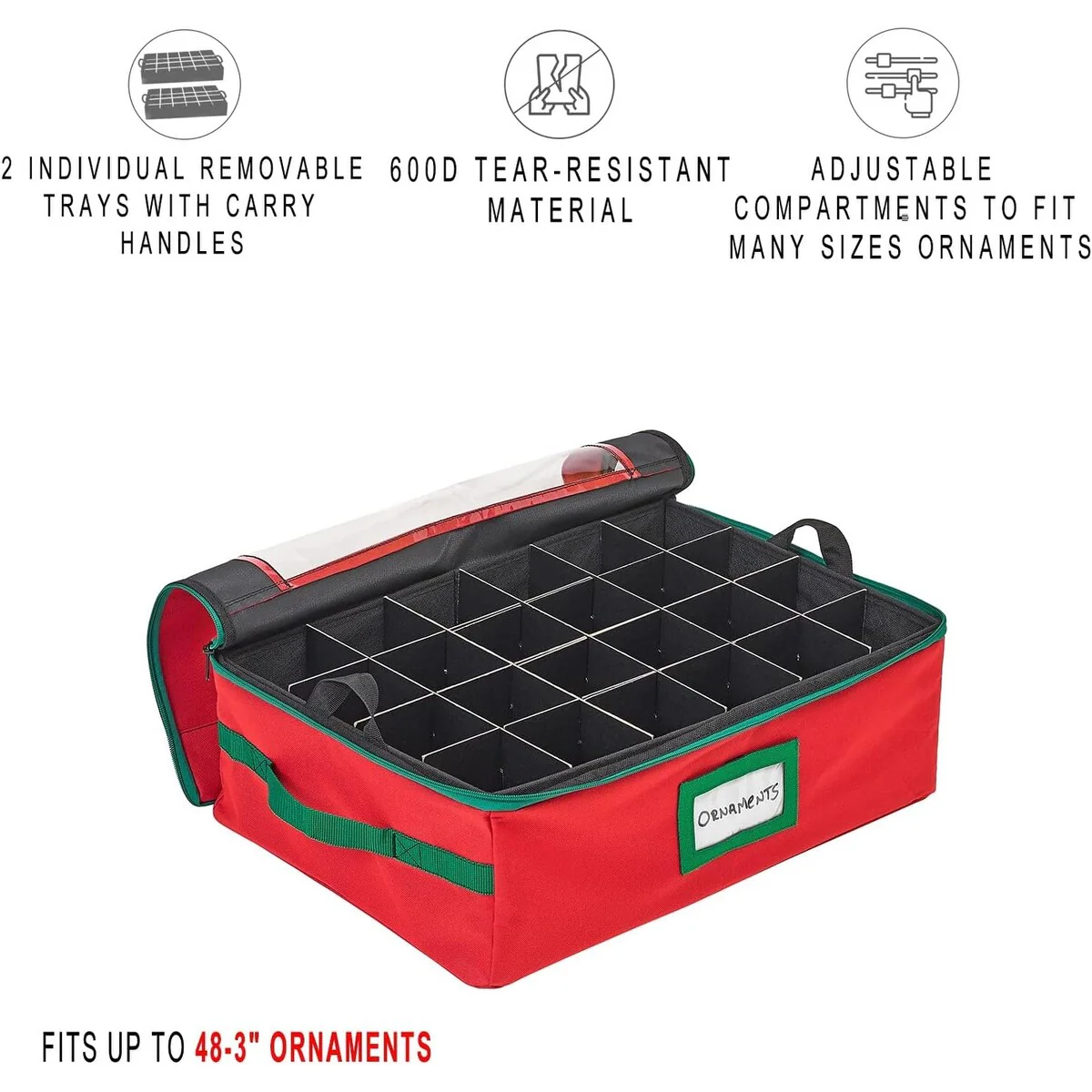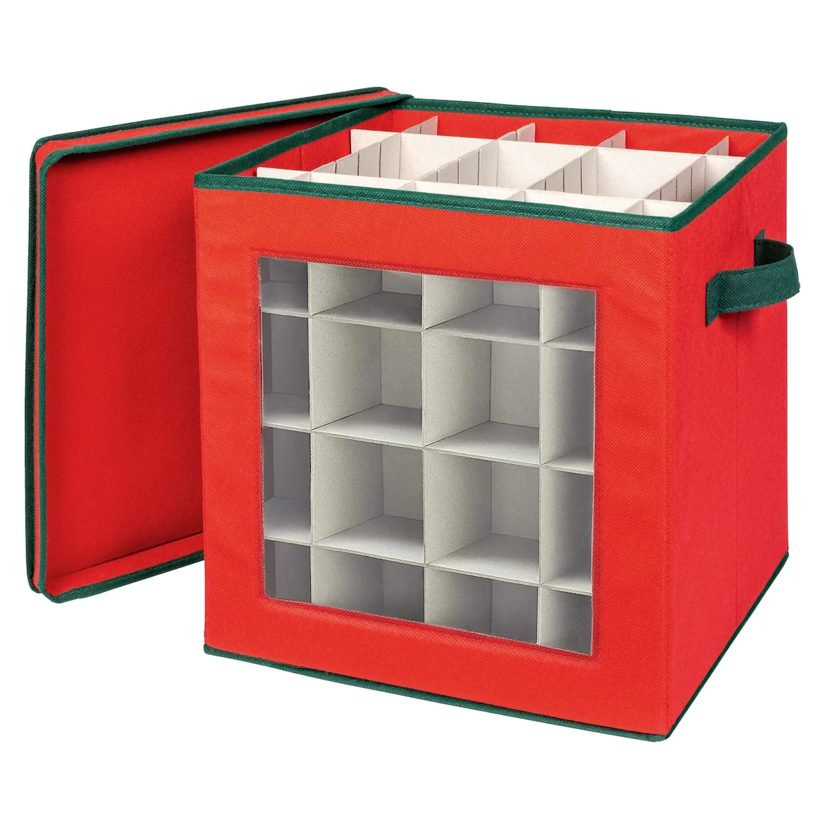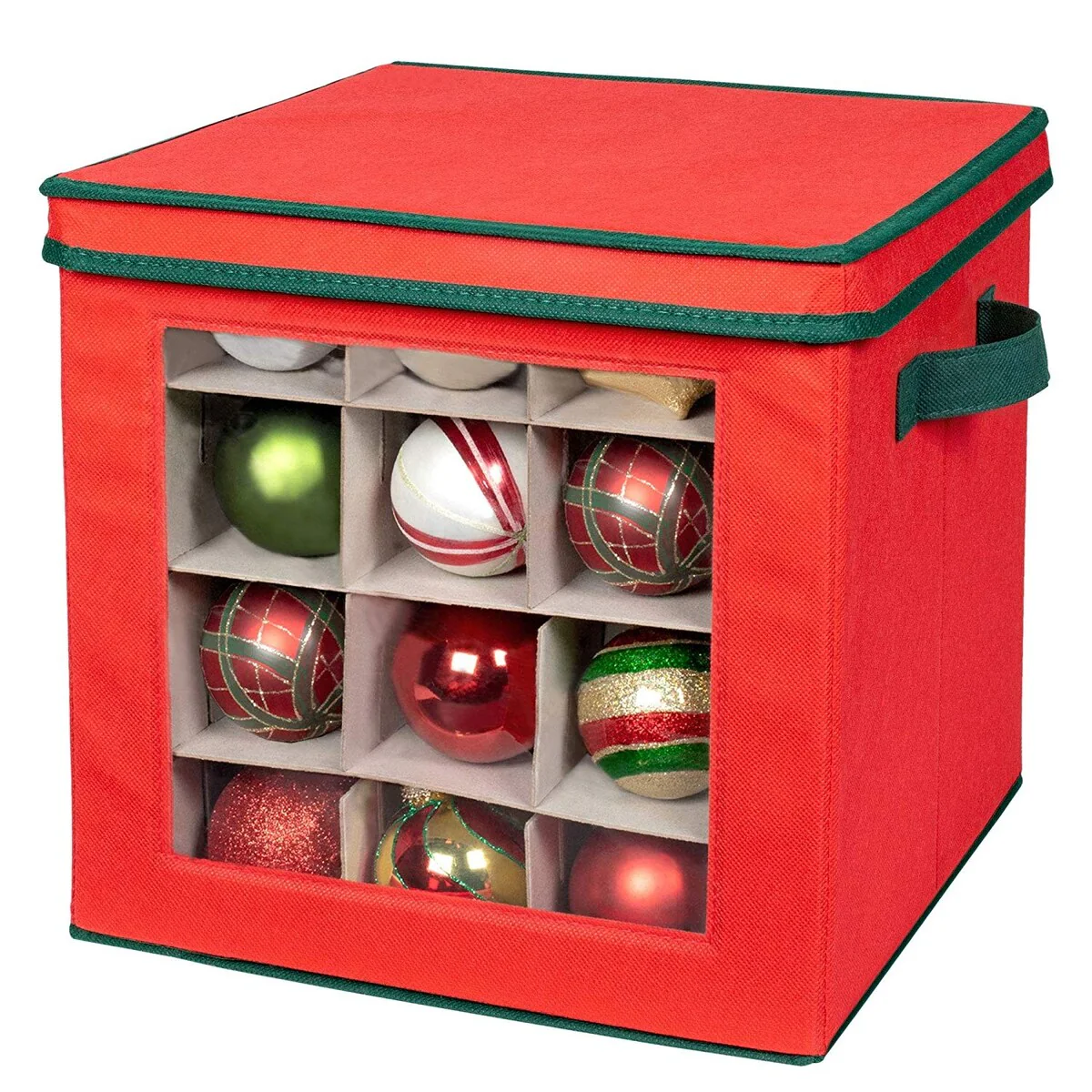 Holiday Ornaments Storage with 64 Individual Compartments with Cover and Handle