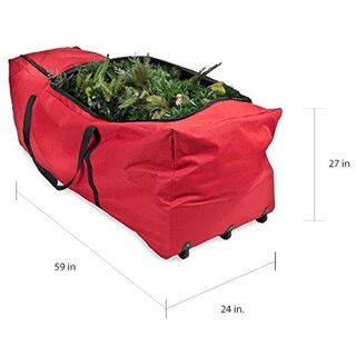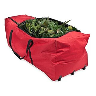 Rolling Christmas Tree Storage Bag with Wheels XXL - Fits Up to 12 Feet Artificial Tree - Red
