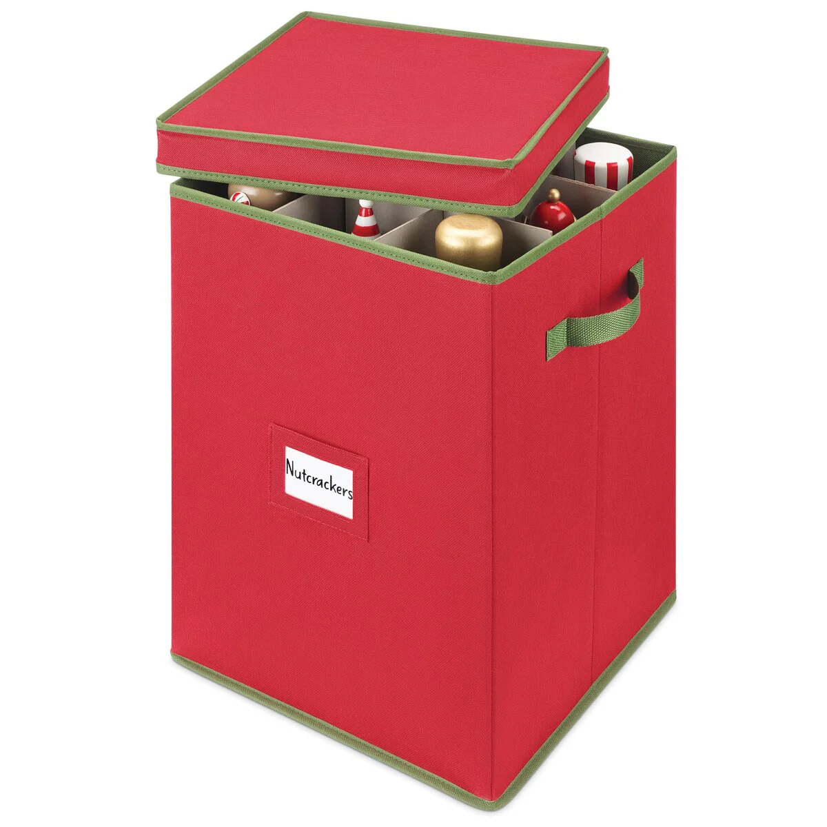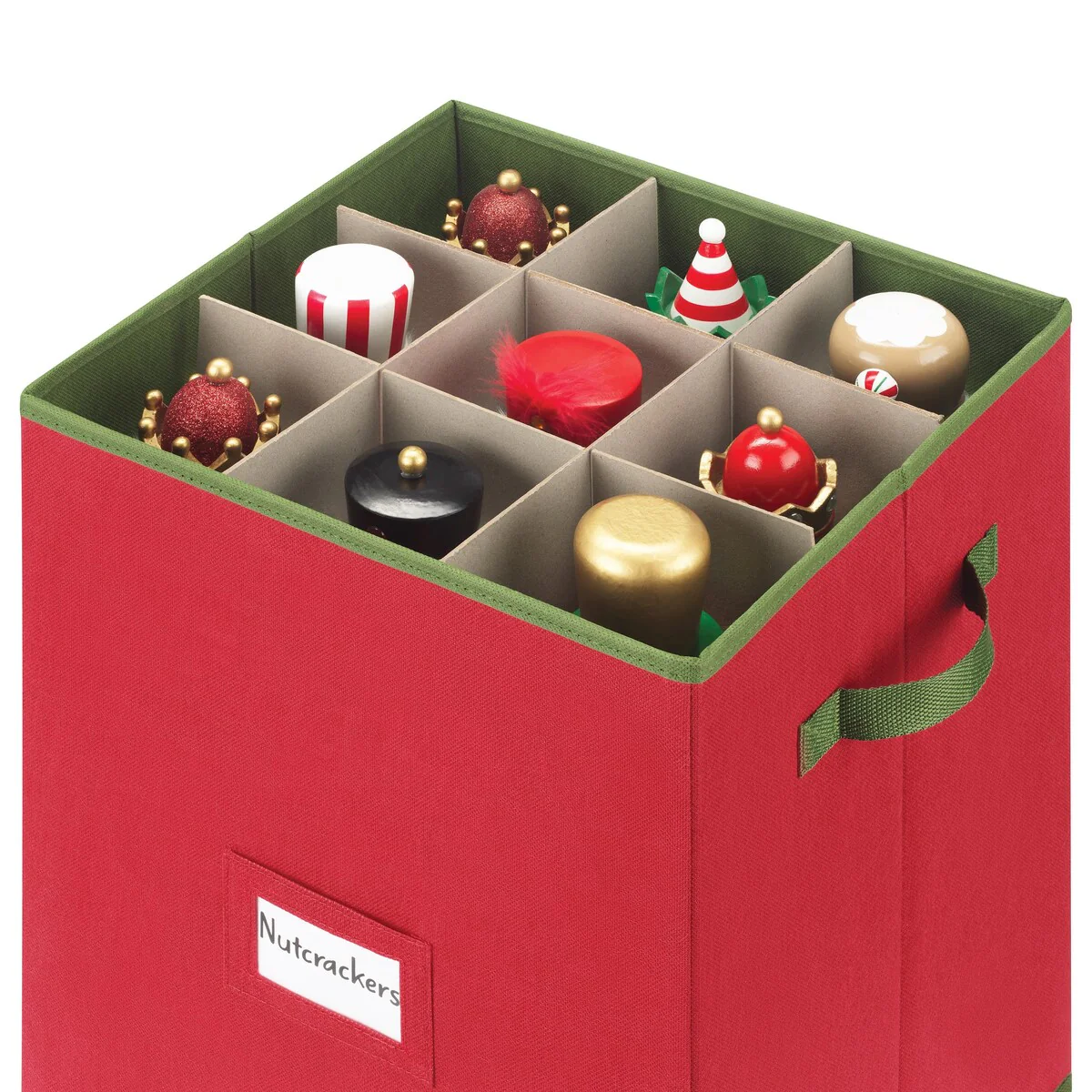 Whitmor Holiday 9-Section Figurine Storage - Red w/Green Trim