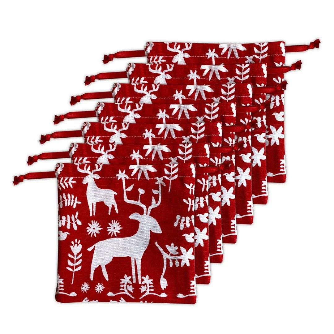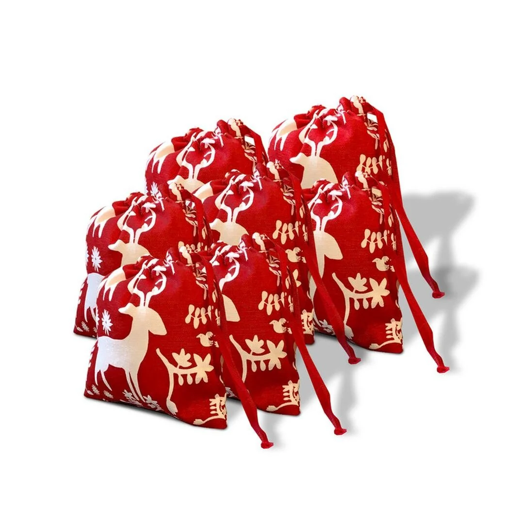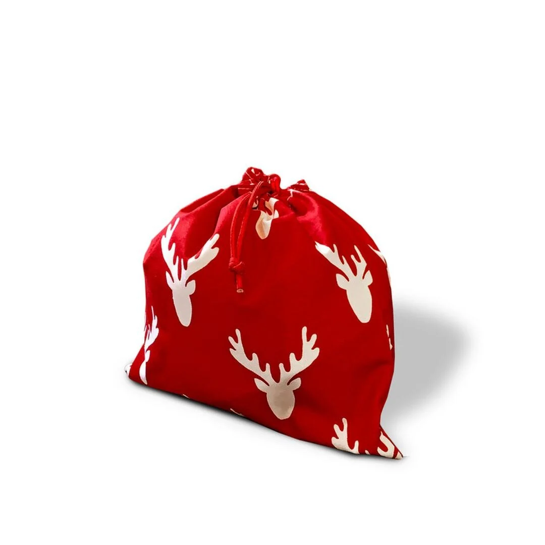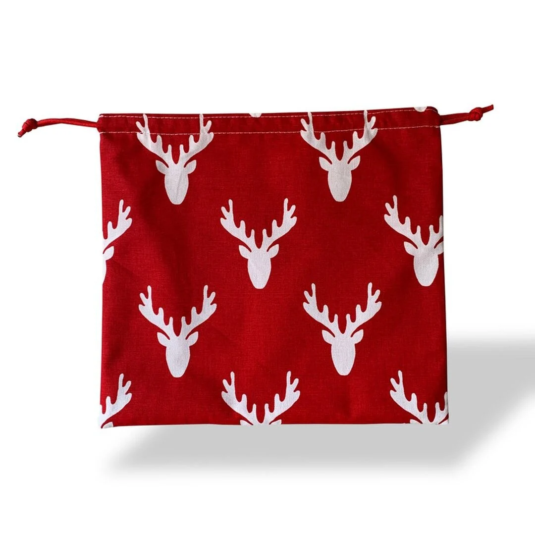 Joita ANTLERS Santa Sack Drawstring Cotton Fabric Christmas Gift Bag with Luxury Red Satin Lining for Christmas Present, 11 x 12