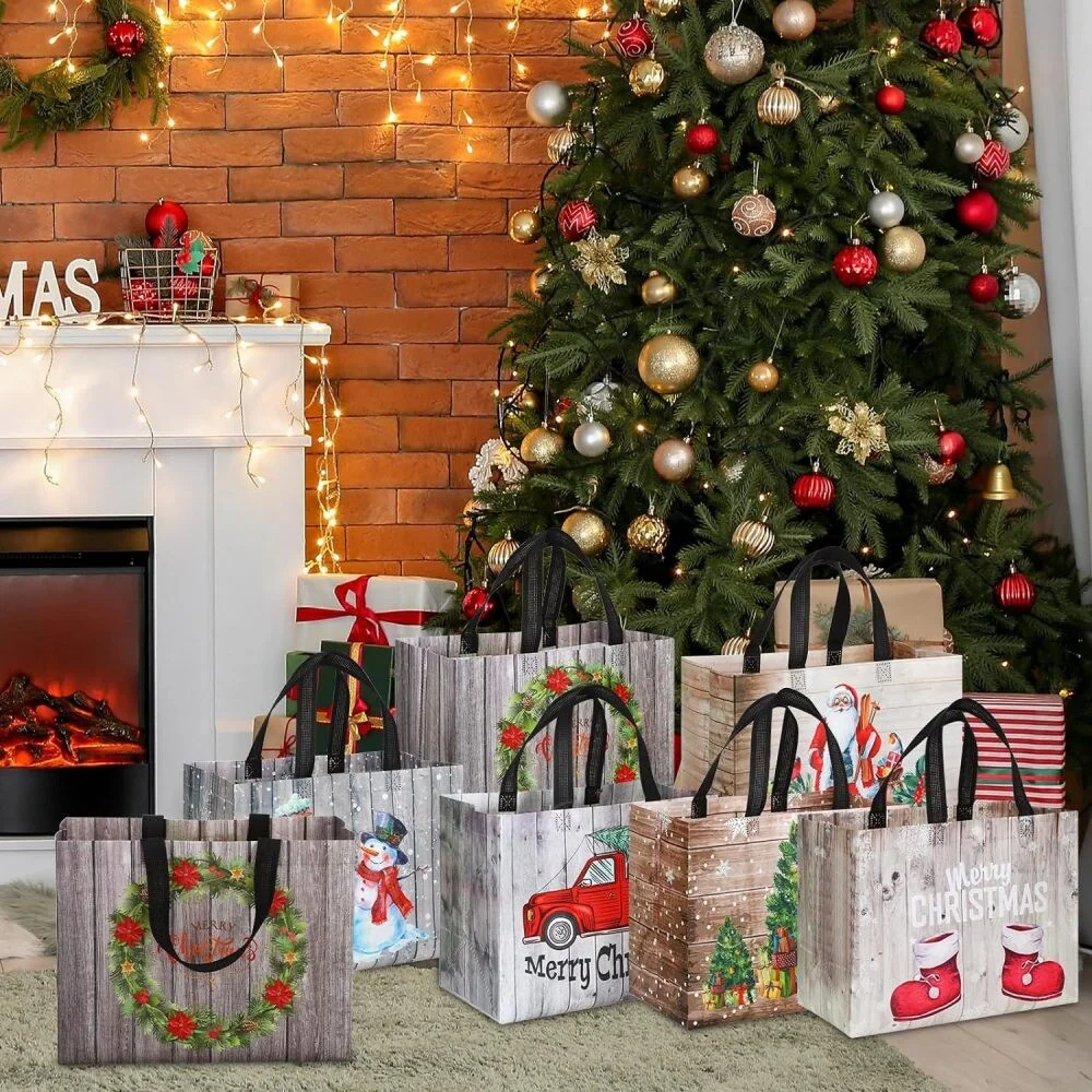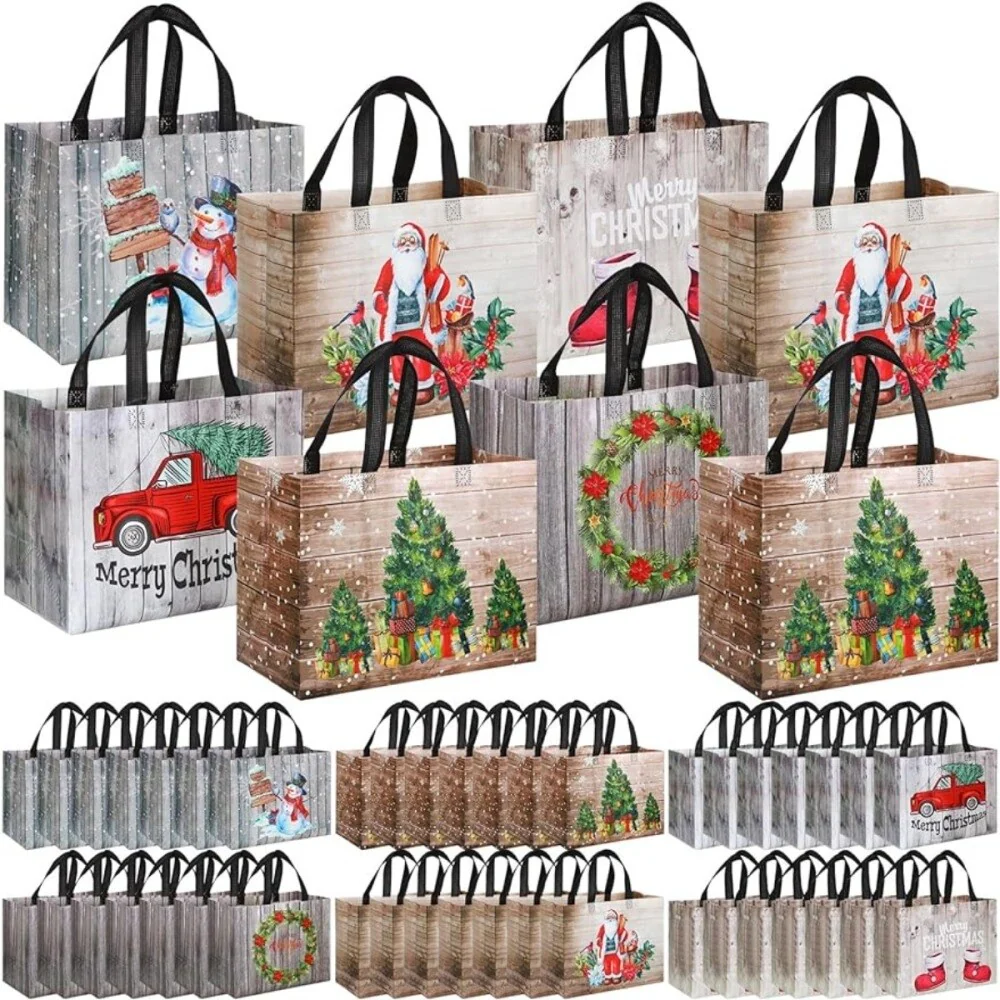 48-Piece Large Christmas Gift Bags Tote Bags Reusable Santa Claus Snowman Totes Bags for Xmas Event Party
