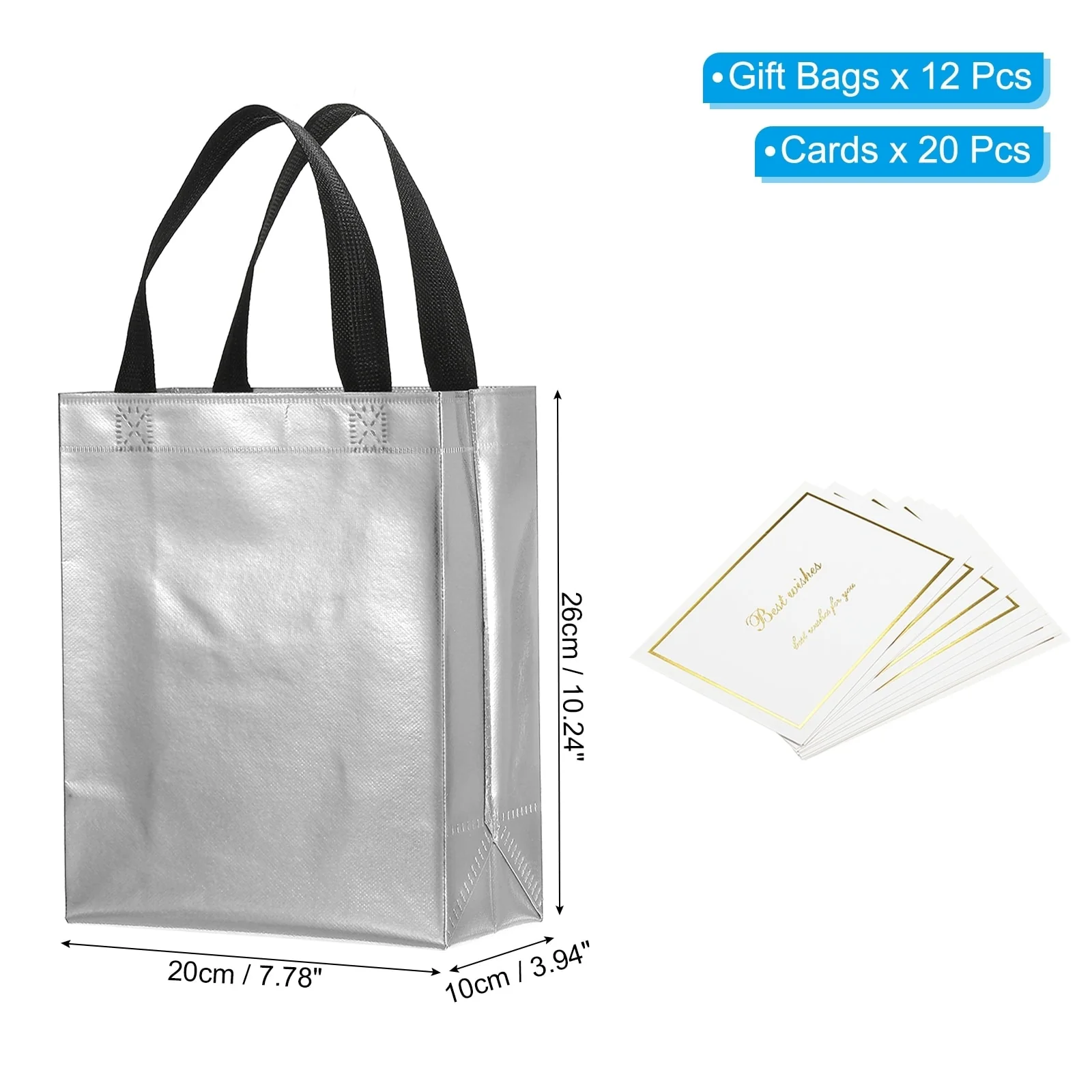 Gift Bags with Cards, 12 Set 8" Reusable Non-Woven Gift Goodie Bags - 10"x8"x4"