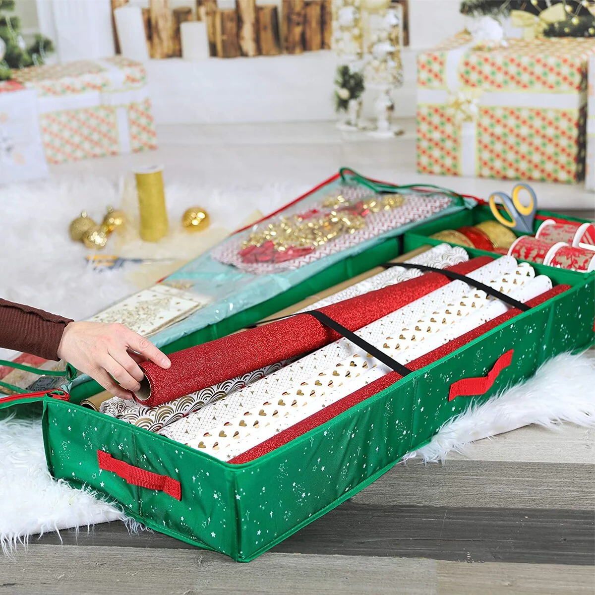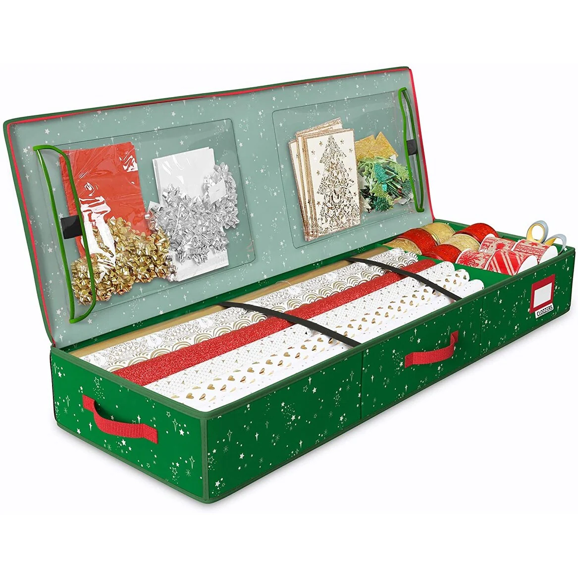Gift Wrap Organizer and Storage Box Holds 24 Rolls-Green Stars