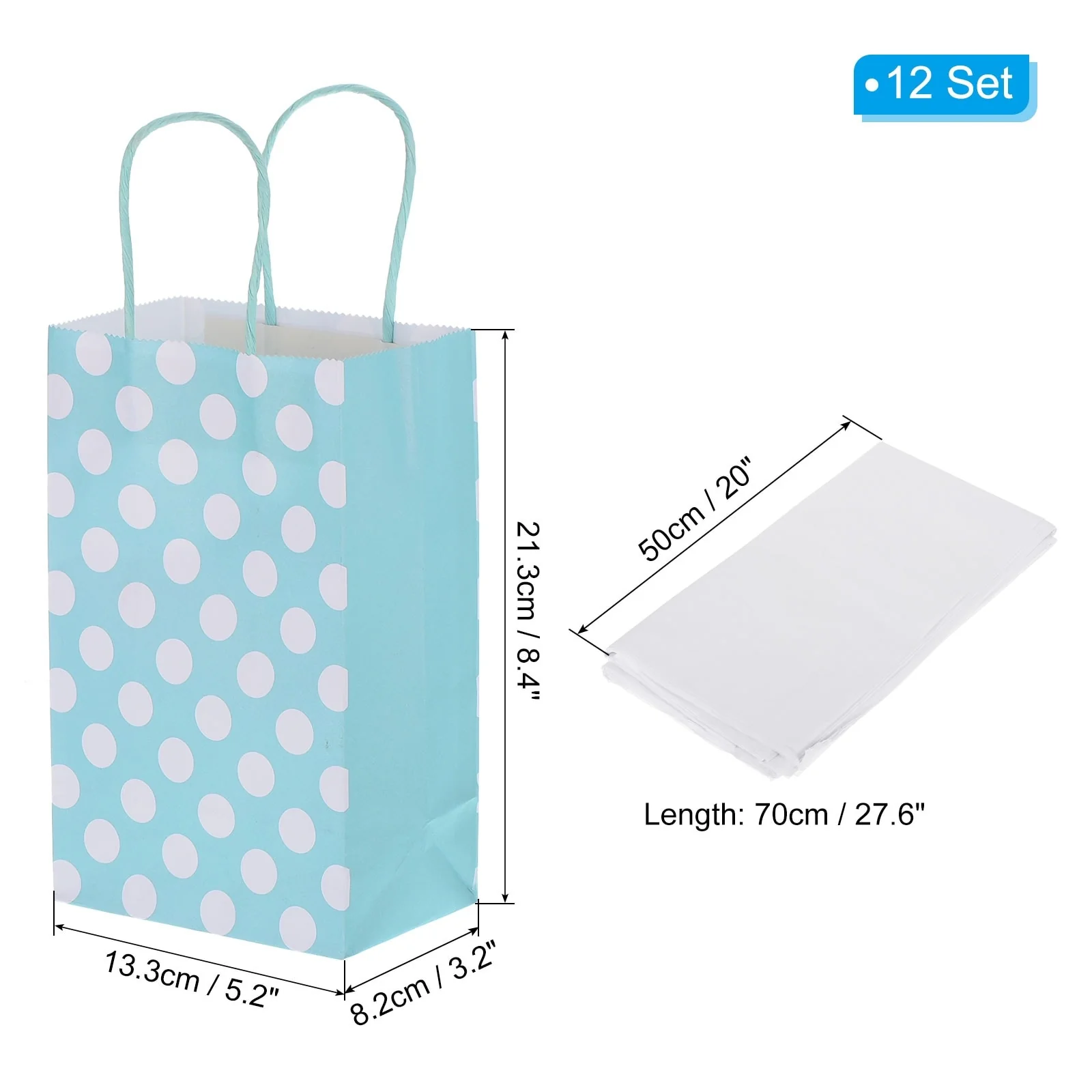 12Pcs 5.2"x3.2"x8.4" Favor Gift Bags with White Tissue Paper, Dotted