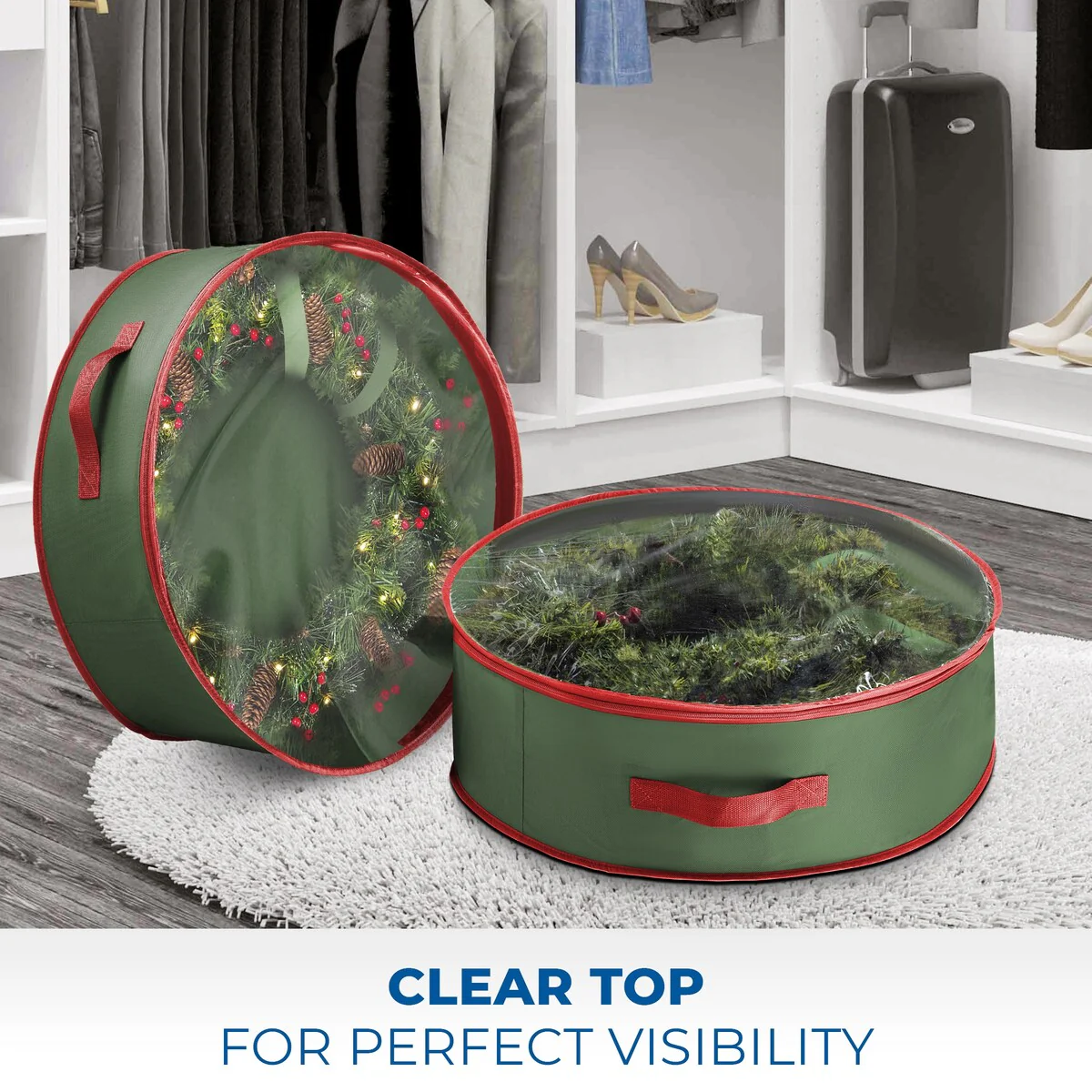30 in Green with Clear Top Nonwoven Wreath Storage Bag Holder 2-Pack - 30 inch