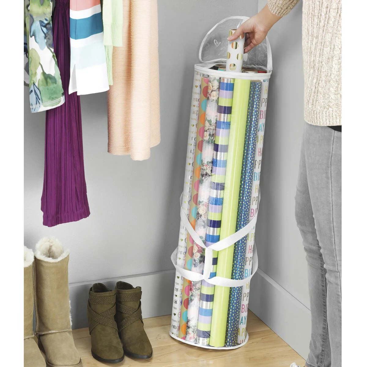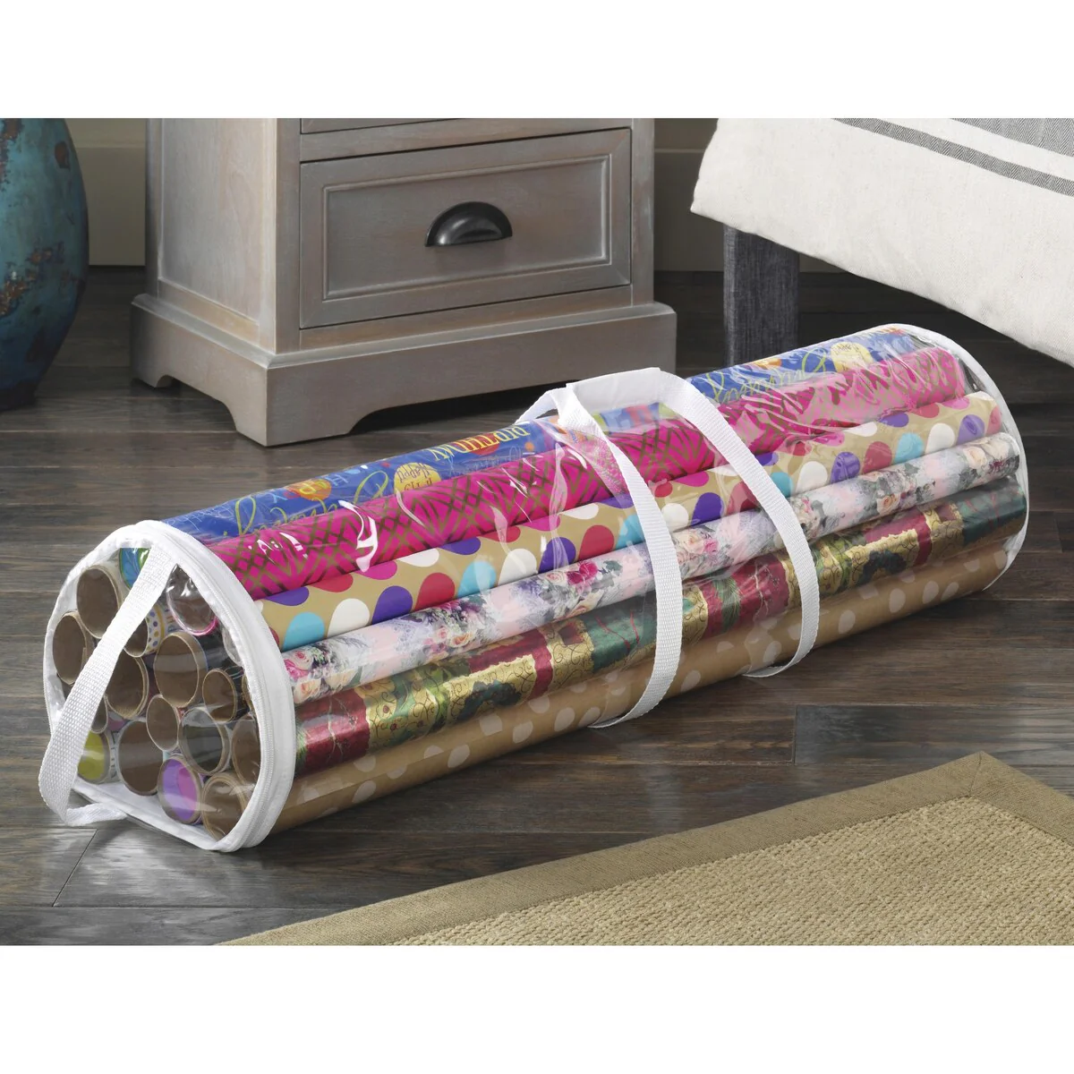 Whitmor Clear Zippered Storage Rolls Gift Wrap Organizer, Holds up to 25 Rolls