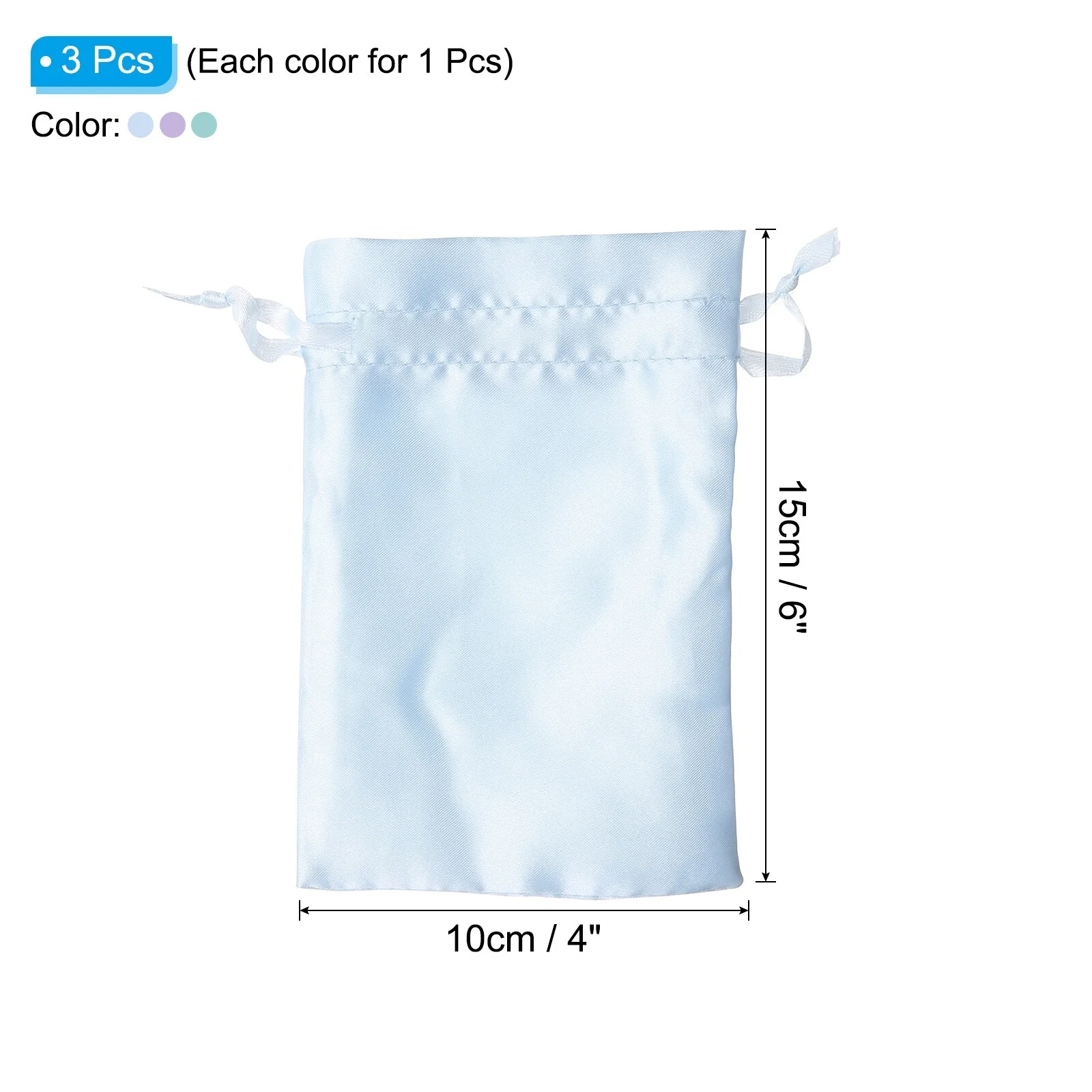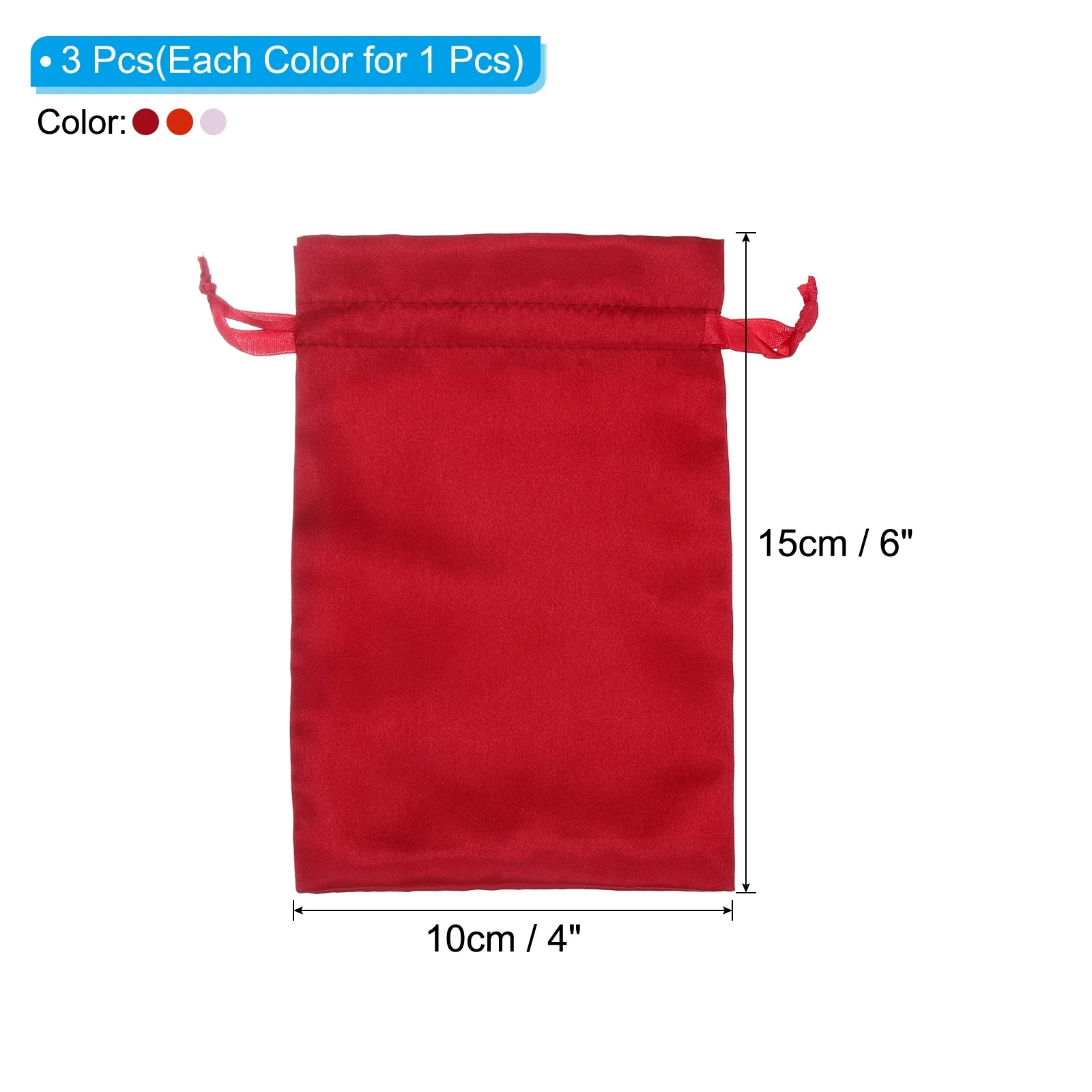 Satin Bags with Drawstring, 3Pcs 4x6 Inch Wedding Favor Bags, 3 Color - 4x6 Inch
