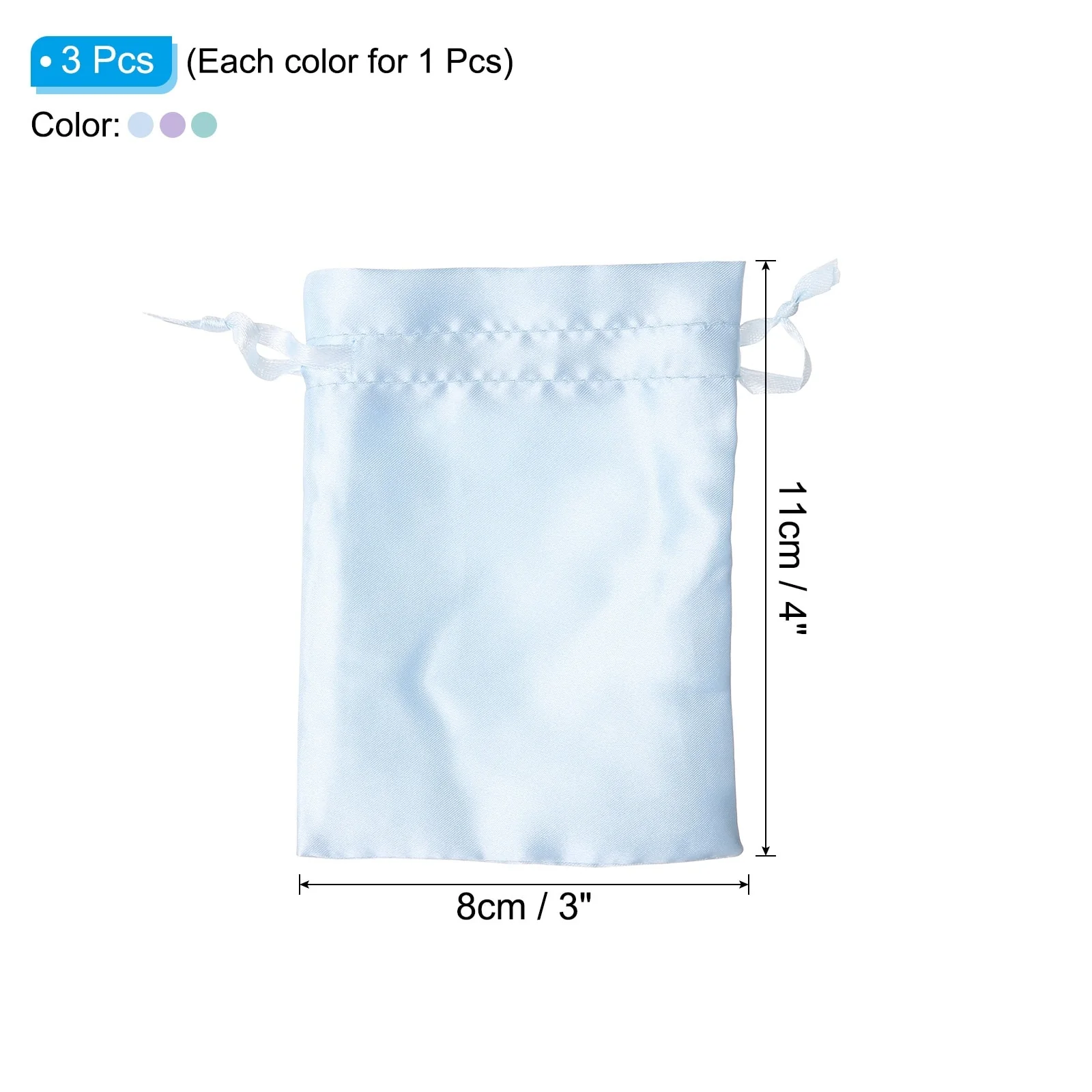 Satin Bags with Drawstring, 3Pack 3x4 Inch Wedding Favor Bags, 3 Color - 3x4 Inch