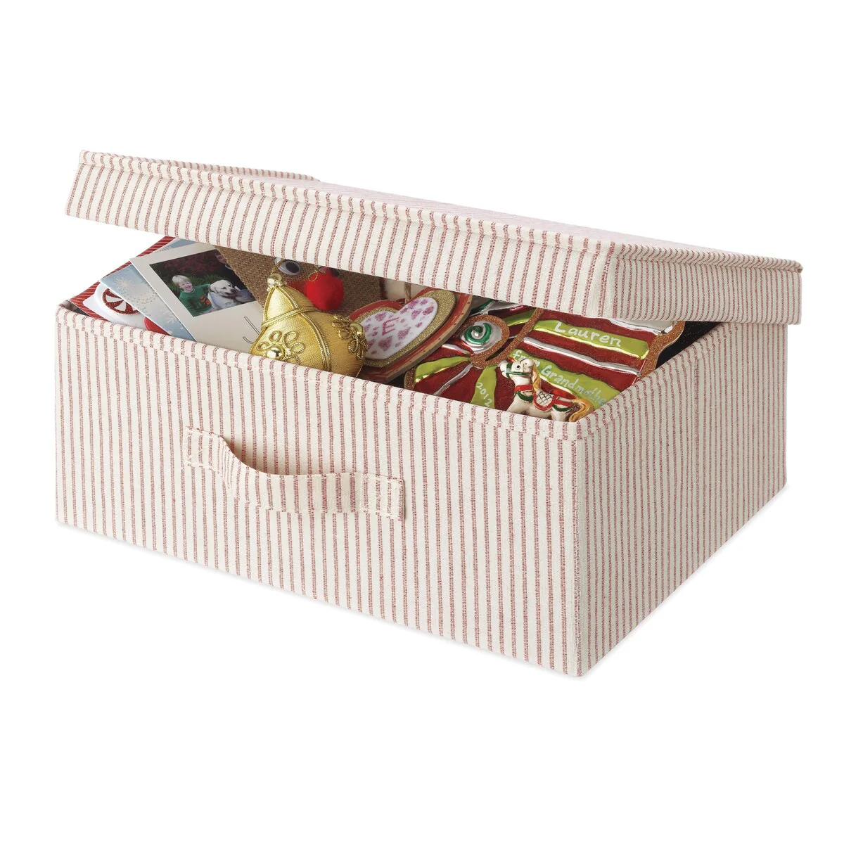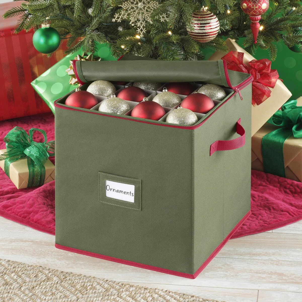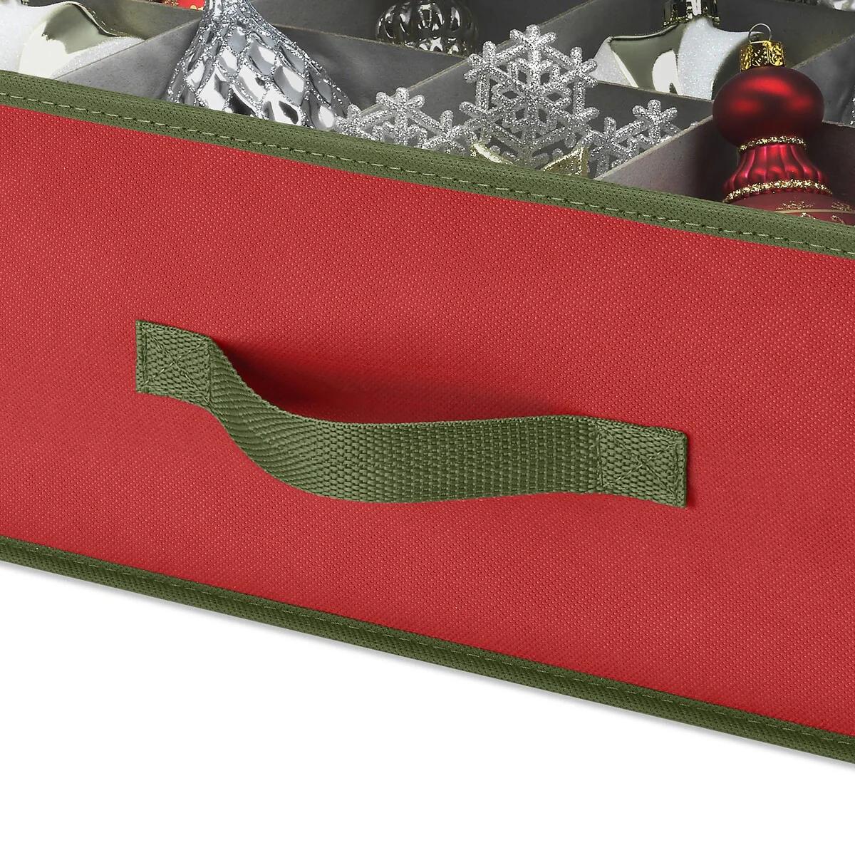 Whitmor Christmas 28-Section Ornament Box, Red with Green Trim