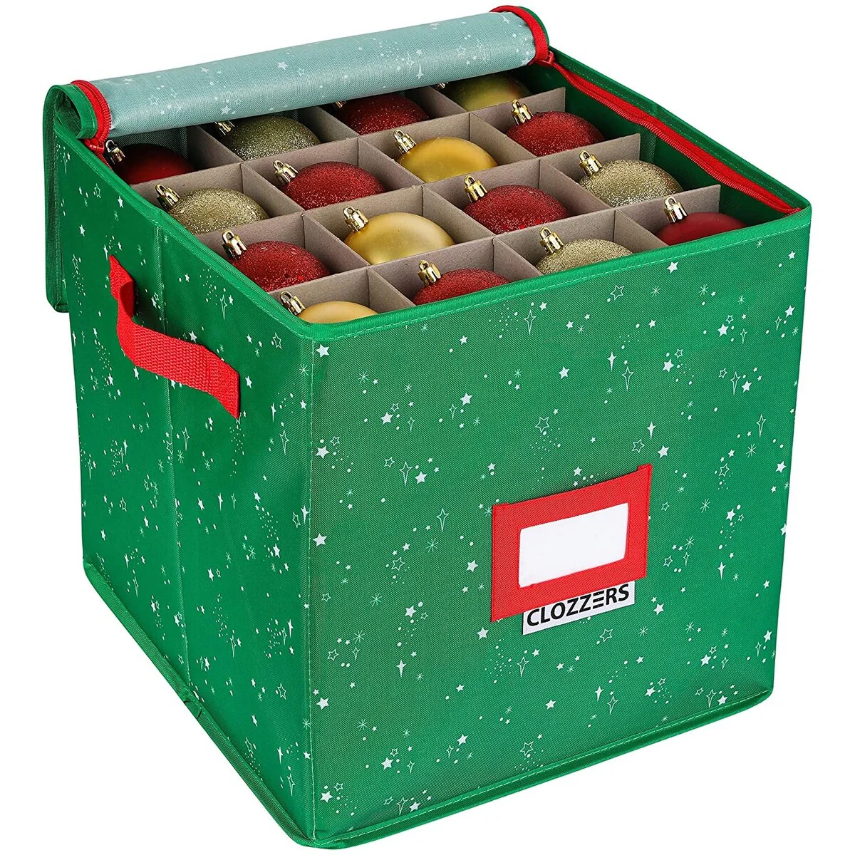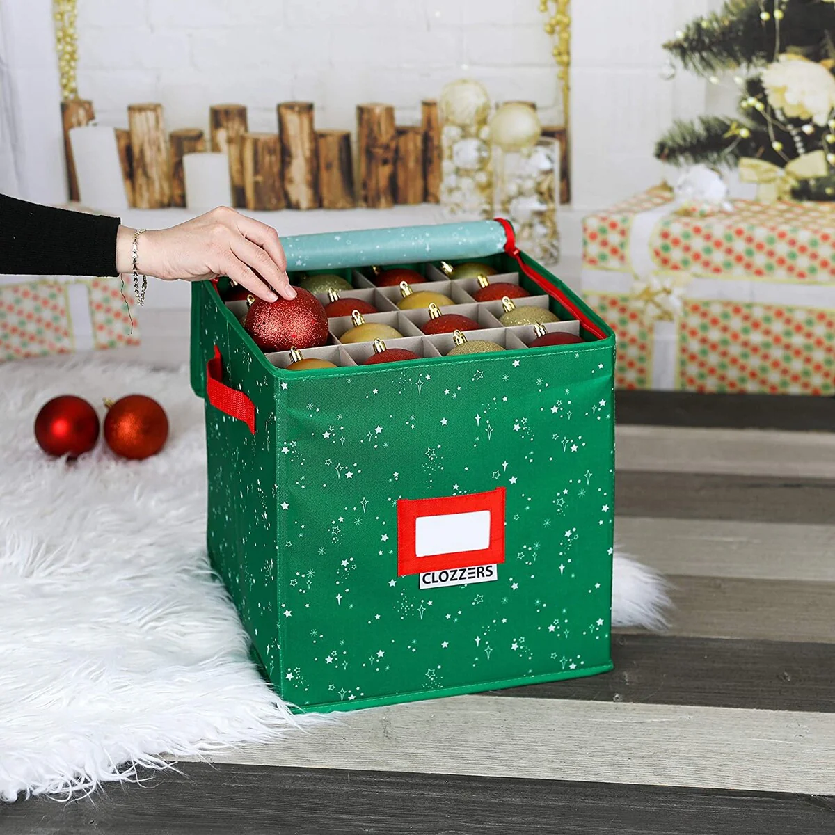 Christmas Ornament Box, Stores up to 64 Ornaments - Green Stars