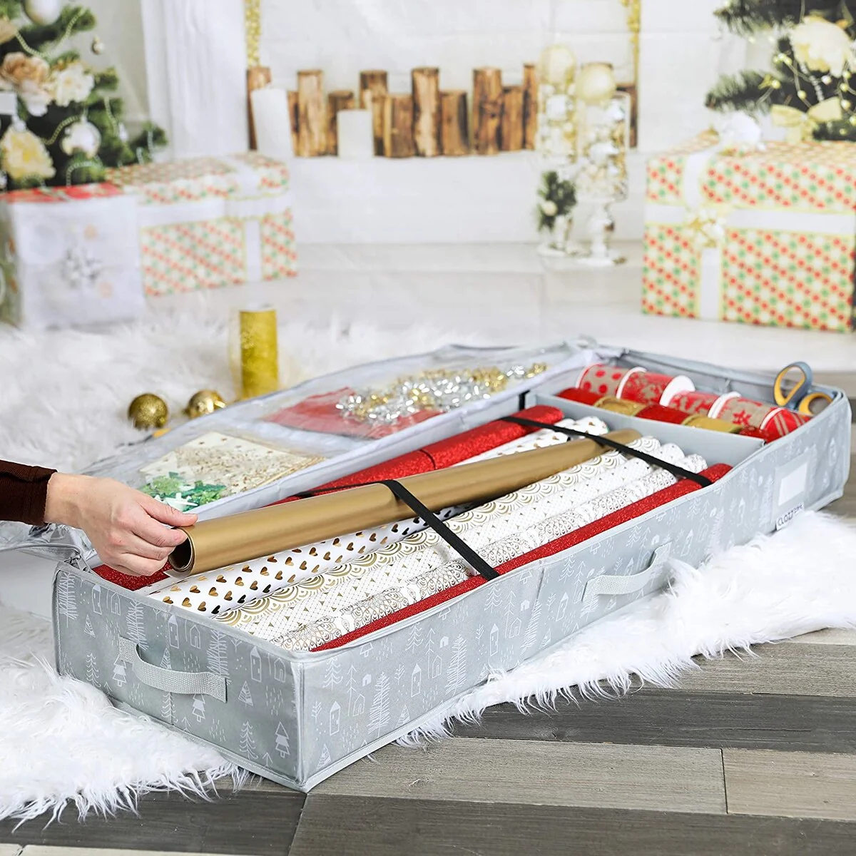 Gift Wrap Organizer and Storage Box Holds 24 Rolls-Tree Print
