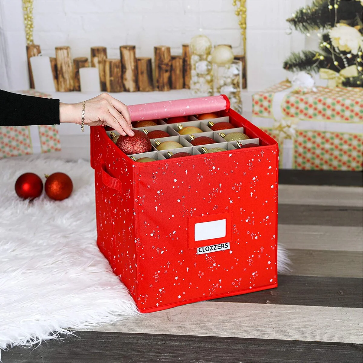 Christmas Ornament Box, Stores up to 64 Ornaments - Red Stars