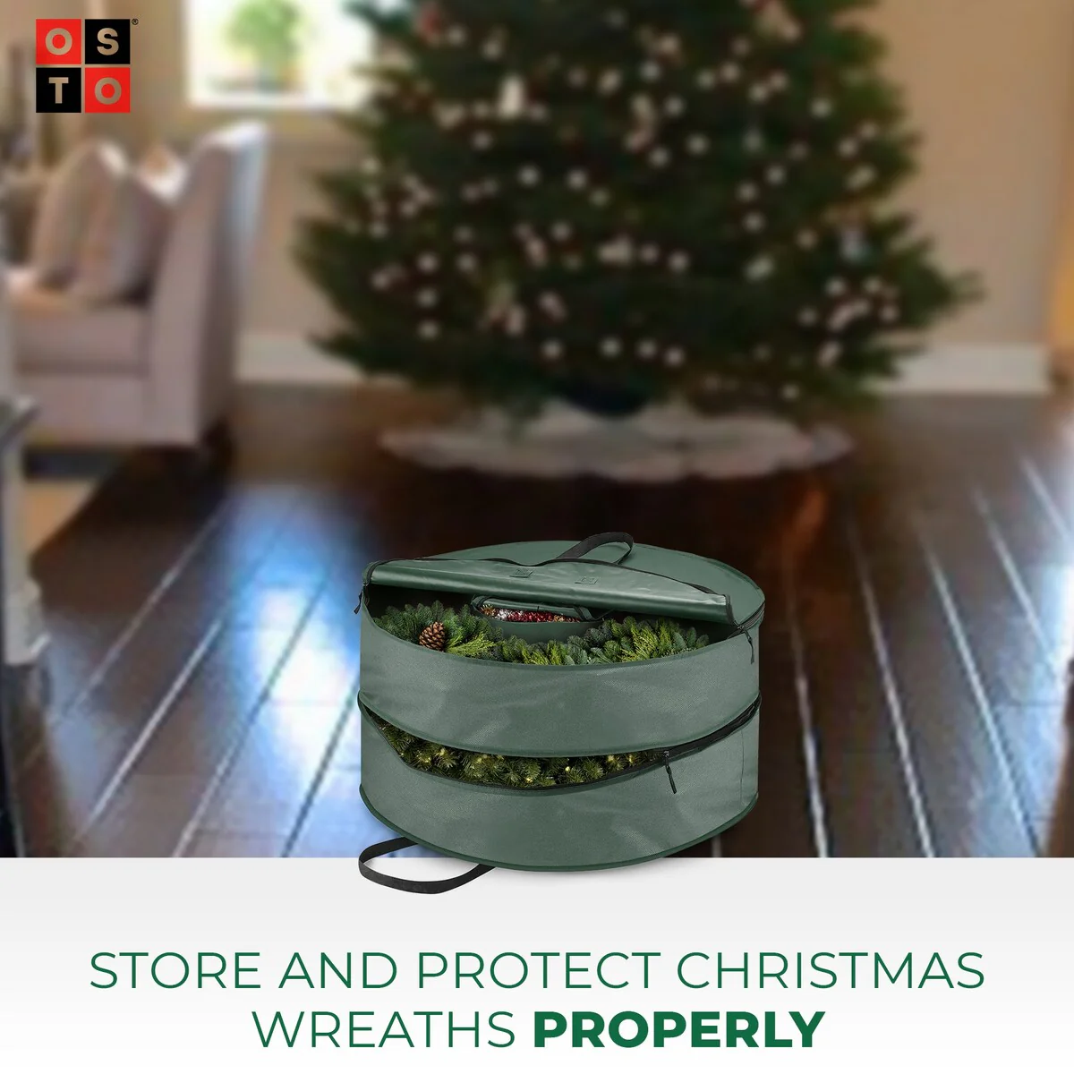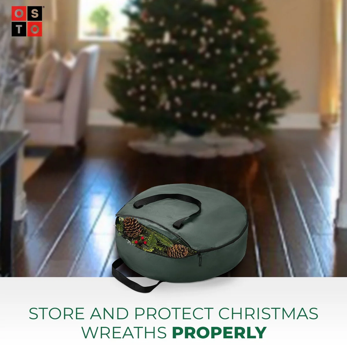 Superior Christmas Wreath Storage Bag Holder, 24" Tear Resistant - Green