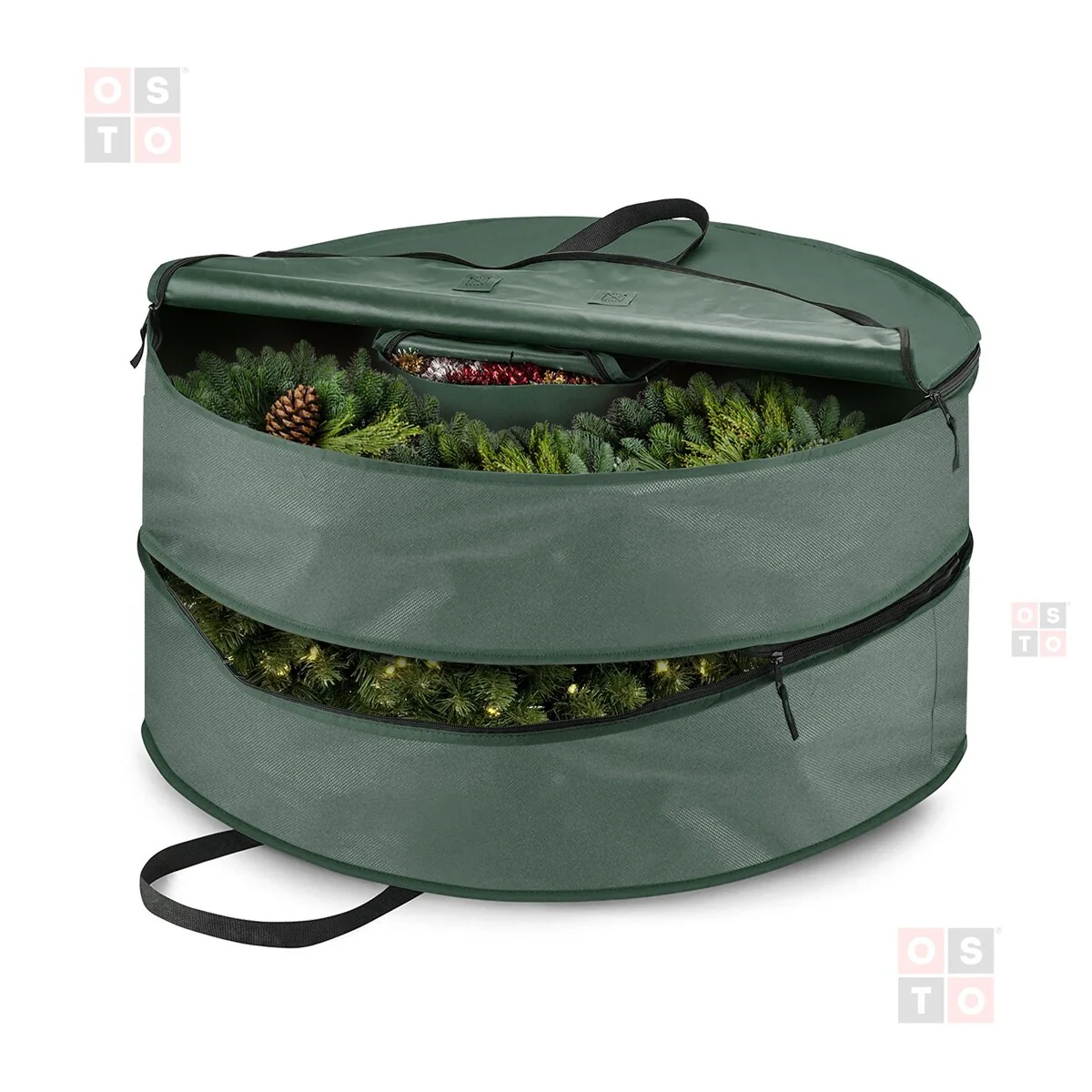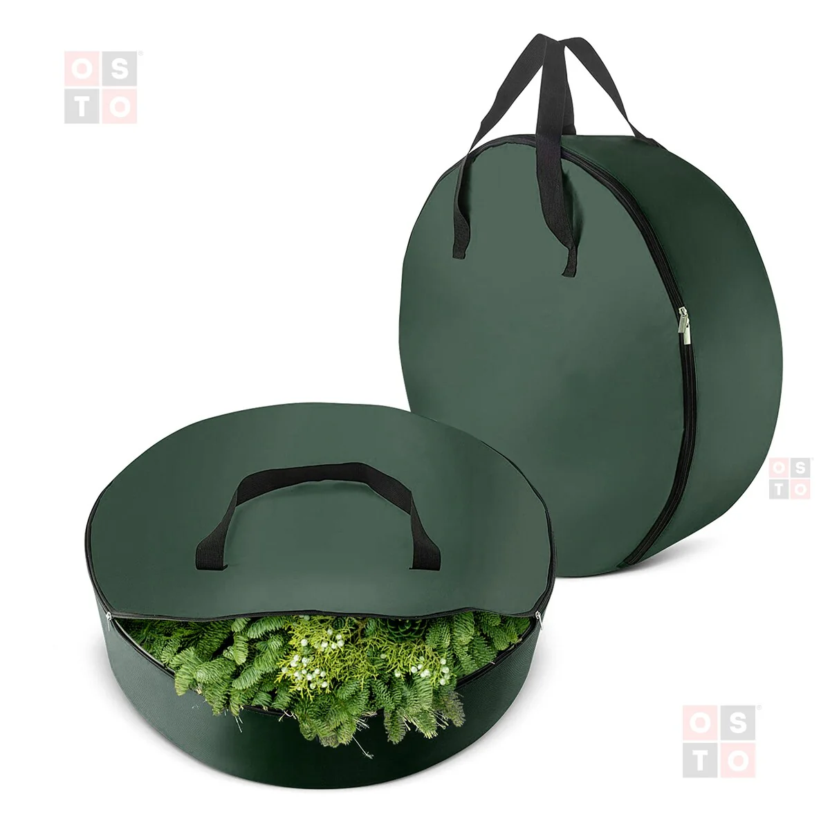 Double Attached Christmas Wreath Storage Bag Holder,30"600D Fabric - Green