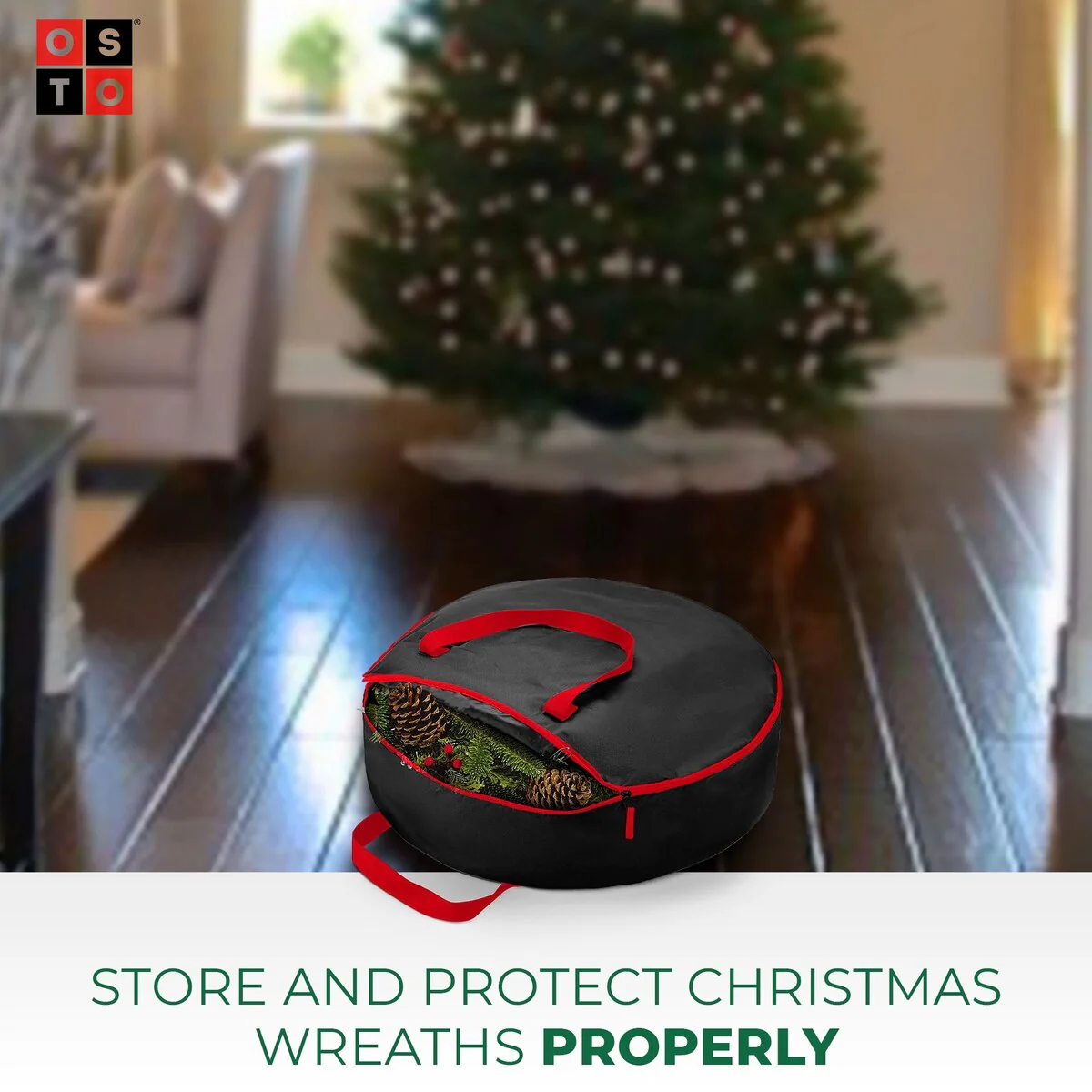 Superior Christmas Wreath Storage Bag Holder, 24" Tear Resistant - Black