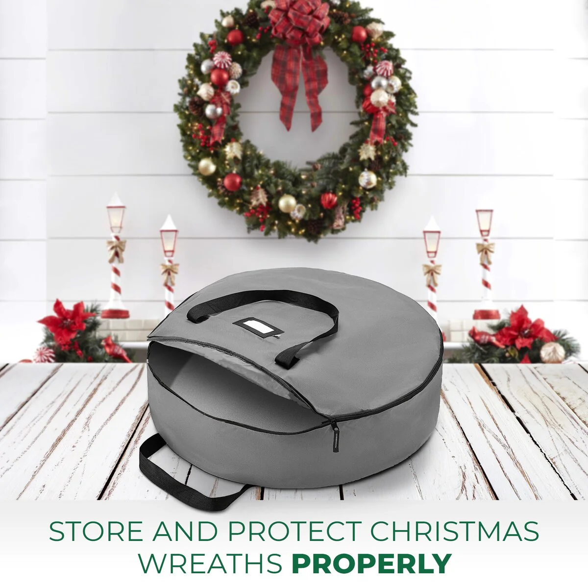 Water Resistant Christmas Wreath Storage Bag Holder, 24" PE Storage - Gray