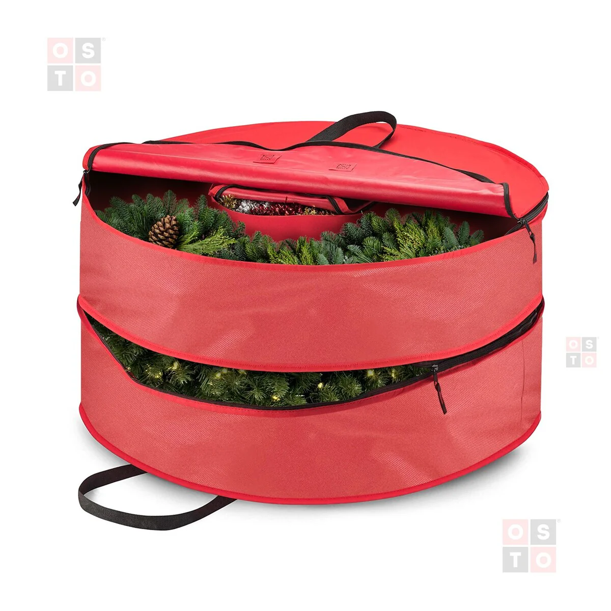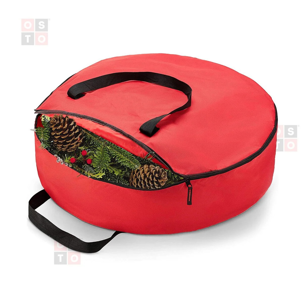 Double Attached Christmas Wreath Storage Bag Holder,30"600D Fabric - Red
