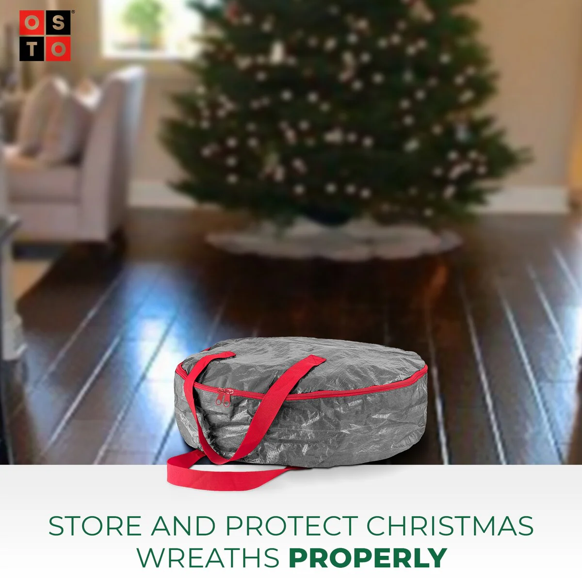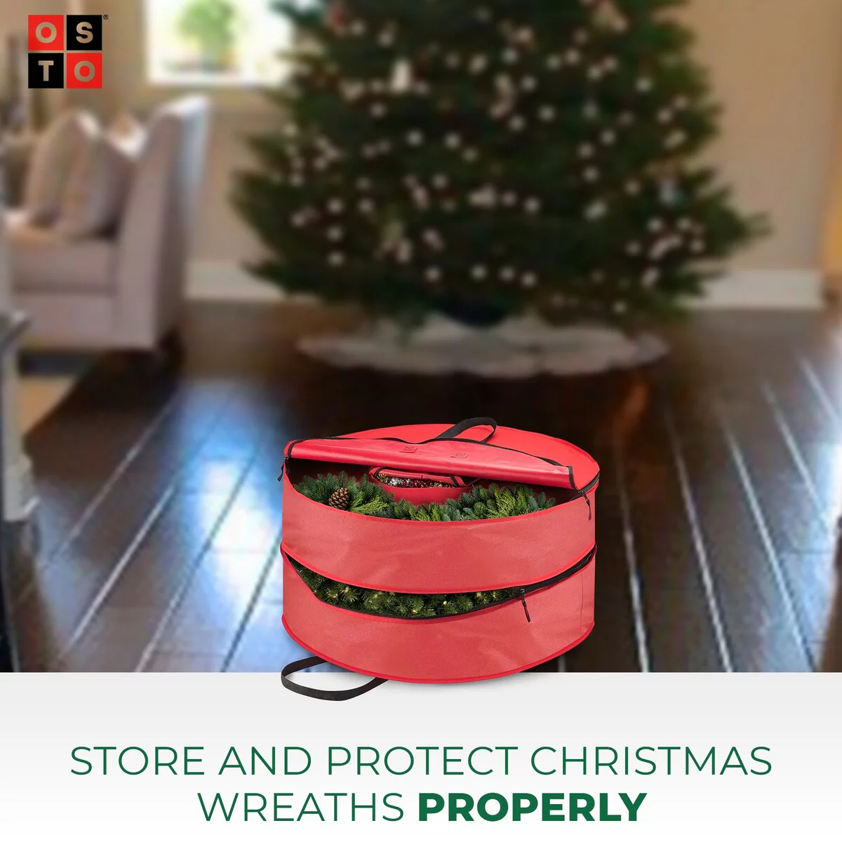 Superior Christmas Wreath Storage Bag Holder, 24" Tear Resistant - Red