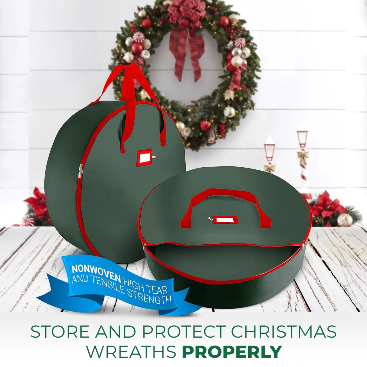 2-Pack Christmas Wreath Storage Bag Holder, 36"-Tear-Resistant-Green - Green